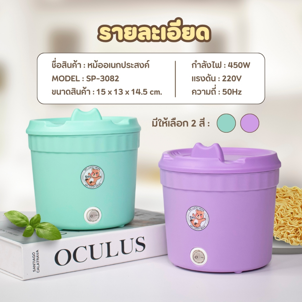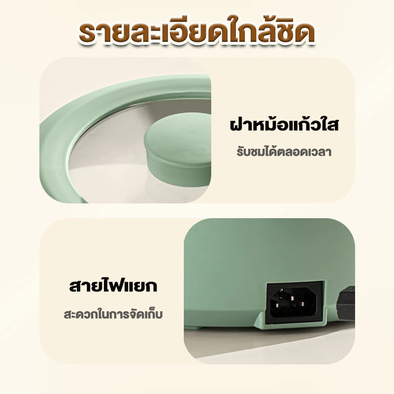 หม้อไฟฟ้าอเนกประสงค์ หุงข้าว ต้ม ผัด ทอด อุ่น ตุ๋น นึ่ง พร้อมซึ้งนึ่ง ฝาแก้ว หม้อเด็กหอ