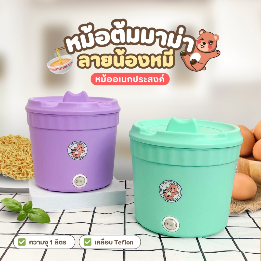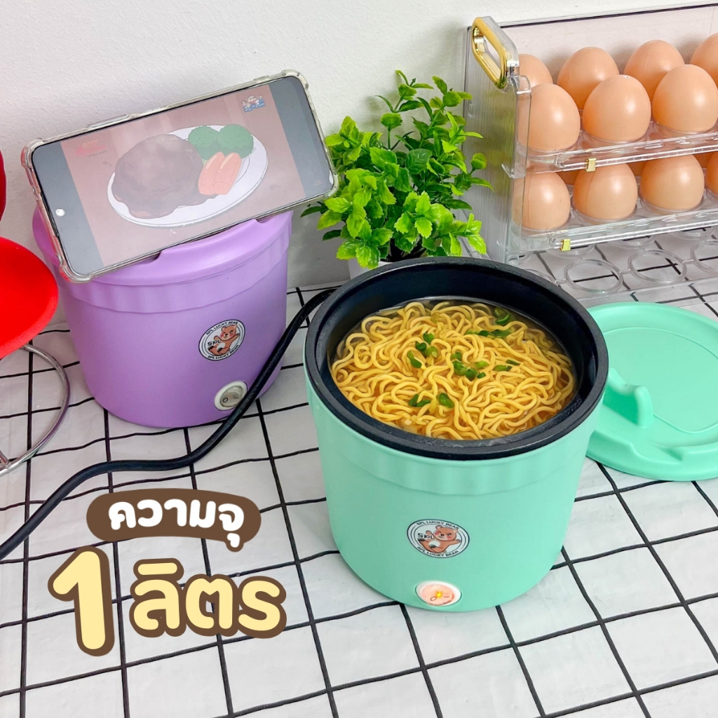 หม้อต้มมาม่า ลายหมี หม้อต้มมาม่าไฟฟ้า หม้ออเนกประสงค์ ร้อนไว หม้อสุกี้ไฟฟ้า ขนาด750ML หม้อไฟฟ้ามินิ หม้อชาบู