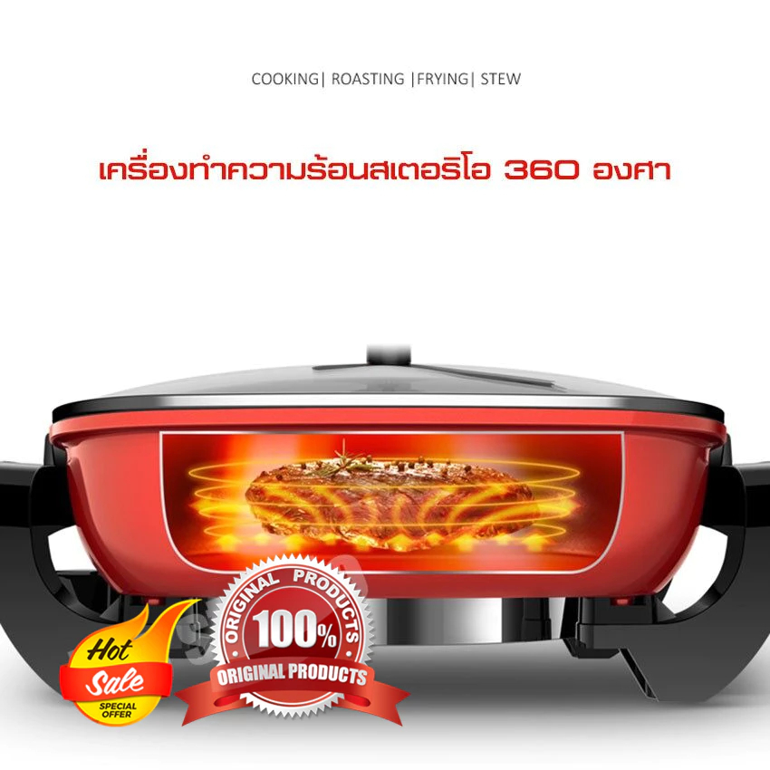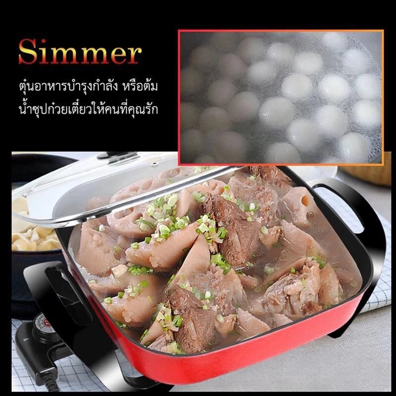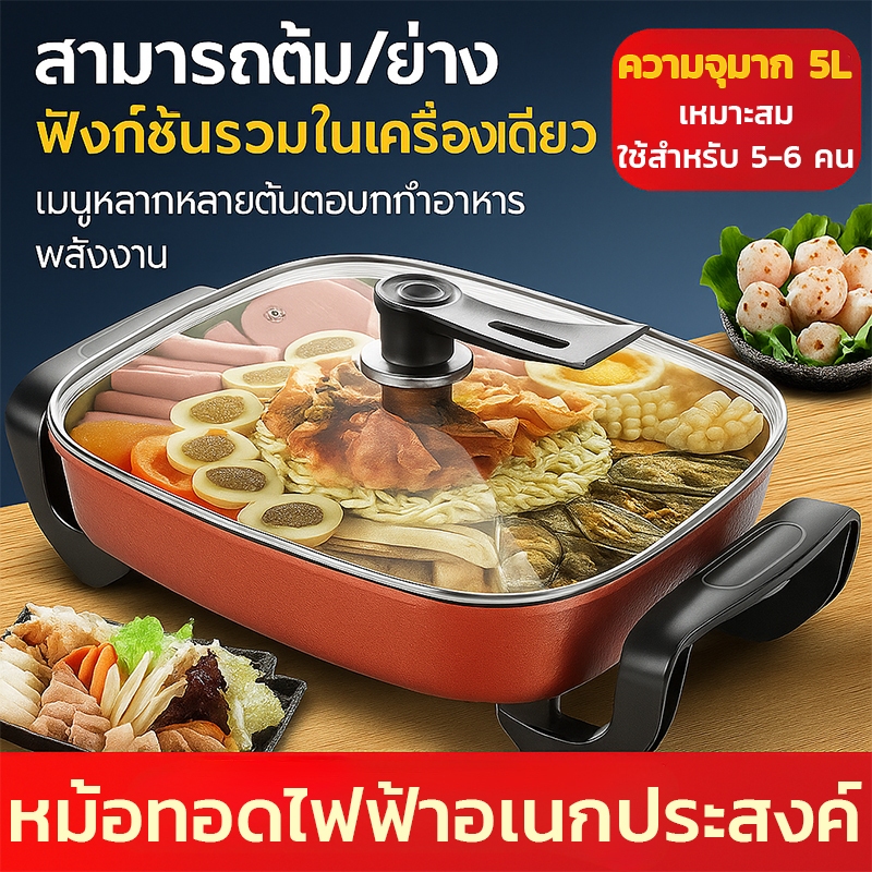 หม้อไฟฟ้า กระทะไฟฟ้า กระทะไฟฟ้าเอนกประสงค์ เคลือบป้องกันไม่ติด กำลังไฟ 1500 วัตต์ เหมาะสำหรับ 5-6 คน หุง อุ่น ตุ๋น ต้ม