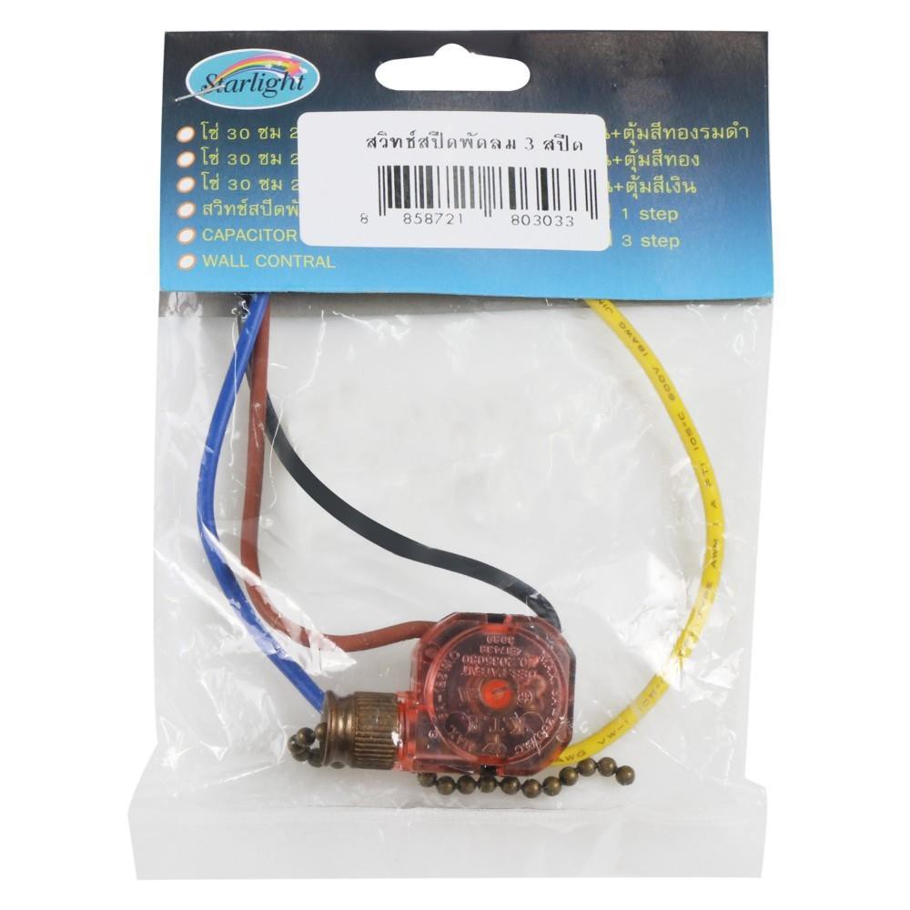 [พร้อมส่ง] STARLIGHT พัดลมเพดาน โคมไฟภายใน สวิตช์สปีดพัดลม สวิทซ์ปรับ 3 สปีด ควบคุมการทำงาน ปิด – เปิด ด้วยโซ่กระตุก