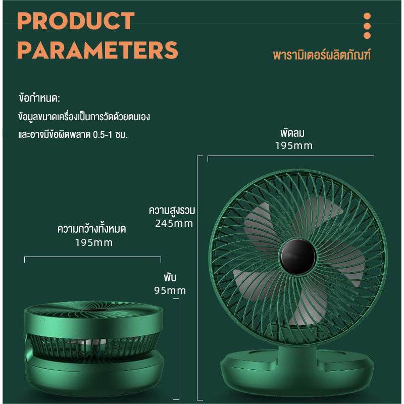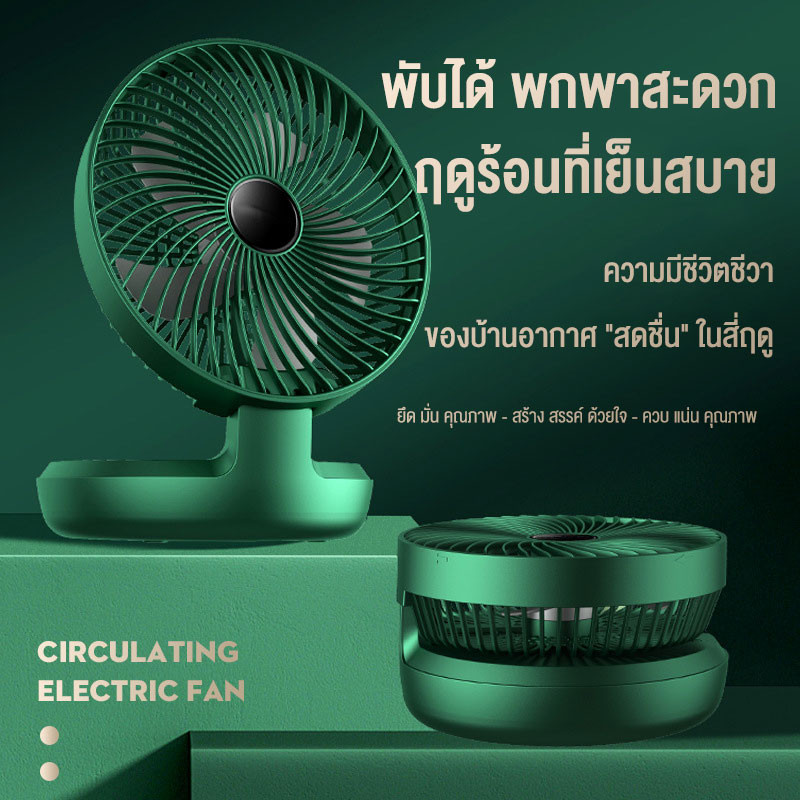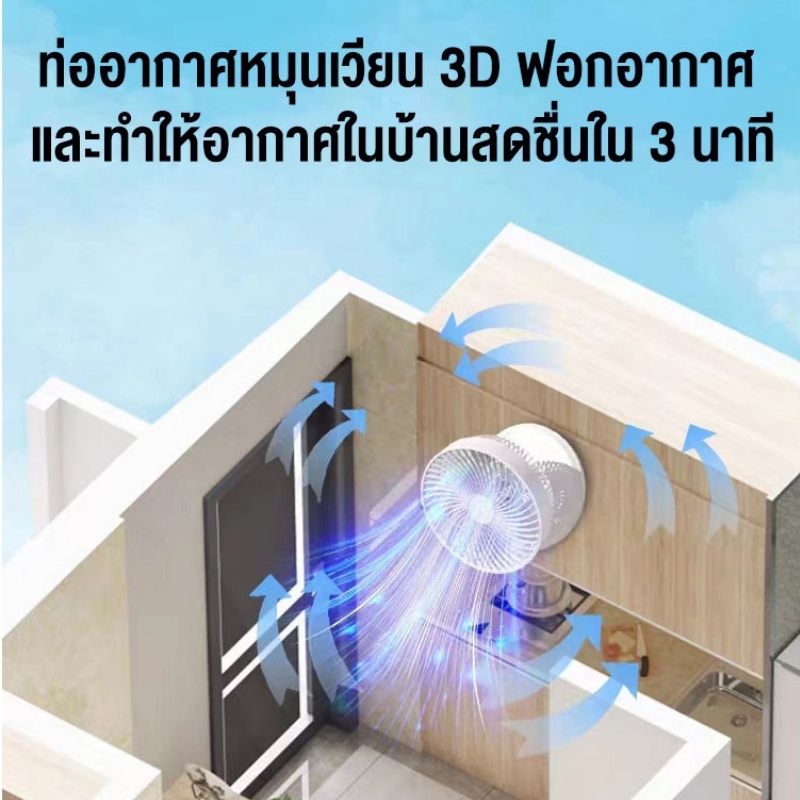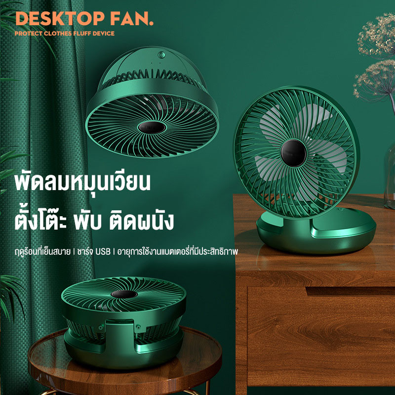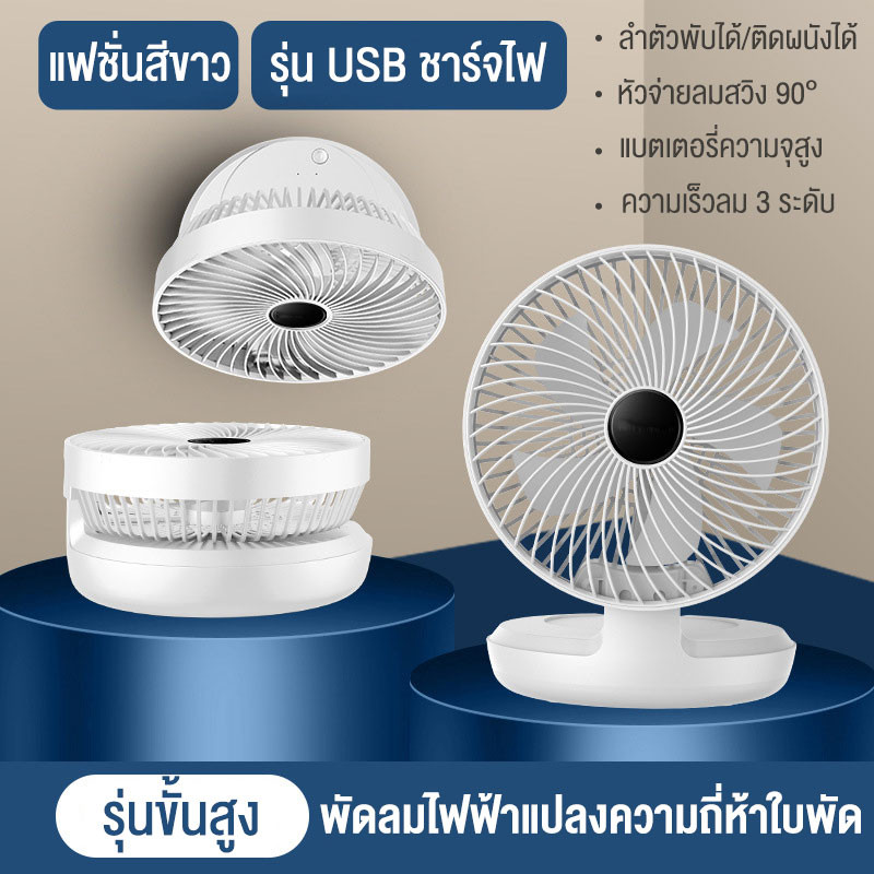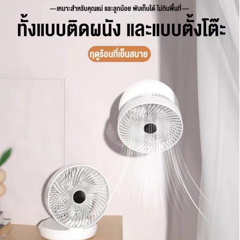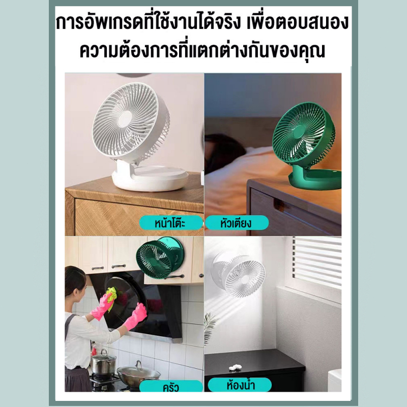 【พัดลมโรตารี่】8นิ้ว พัดลมติดผนัง 1200mAh เป่าได้12ชม แบบพกพา พัดลมตั้งโต๊ะ USBสามารถตั้งเวลาได้ พับได้ เขย่าหัวโดยอ