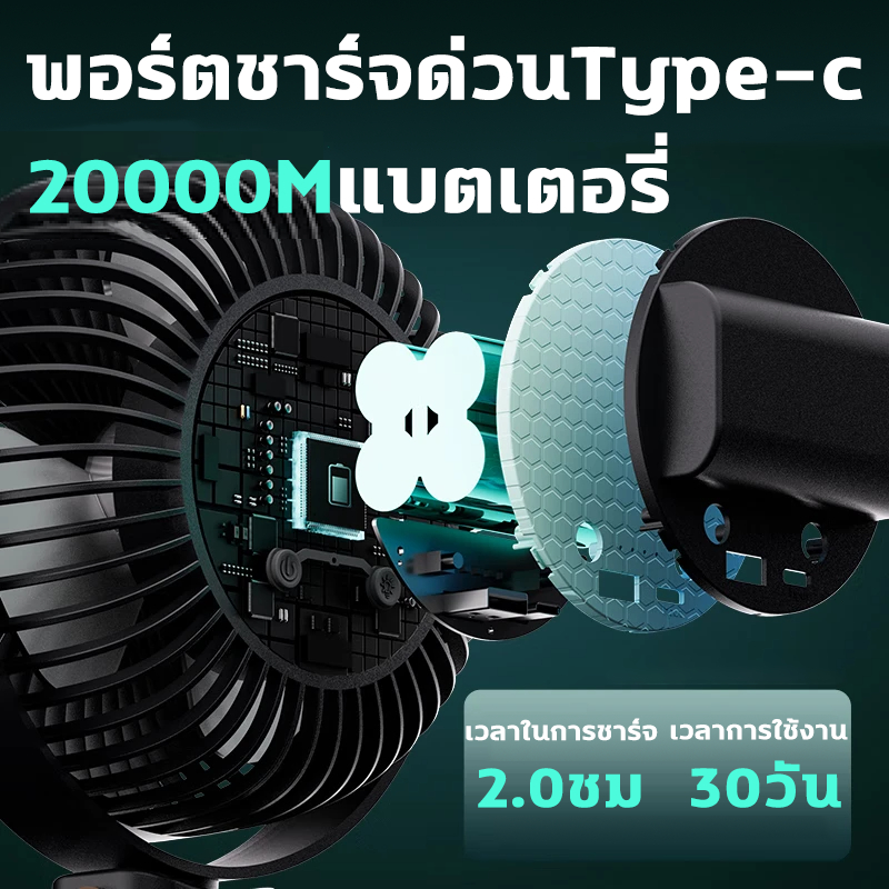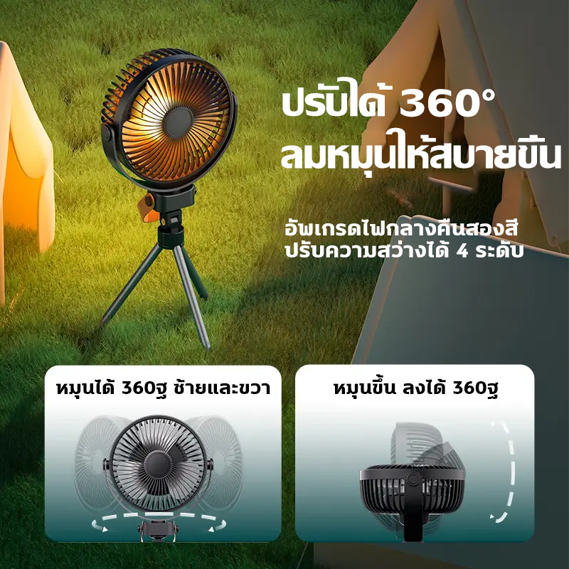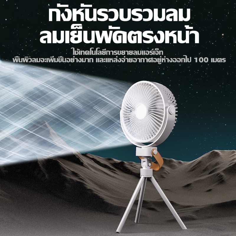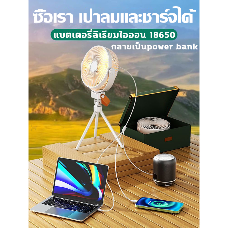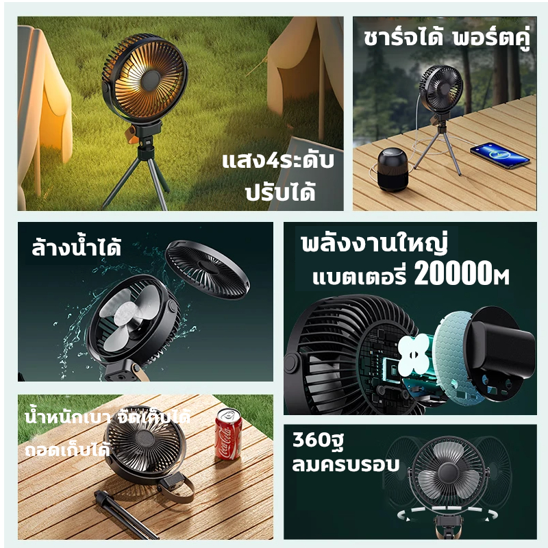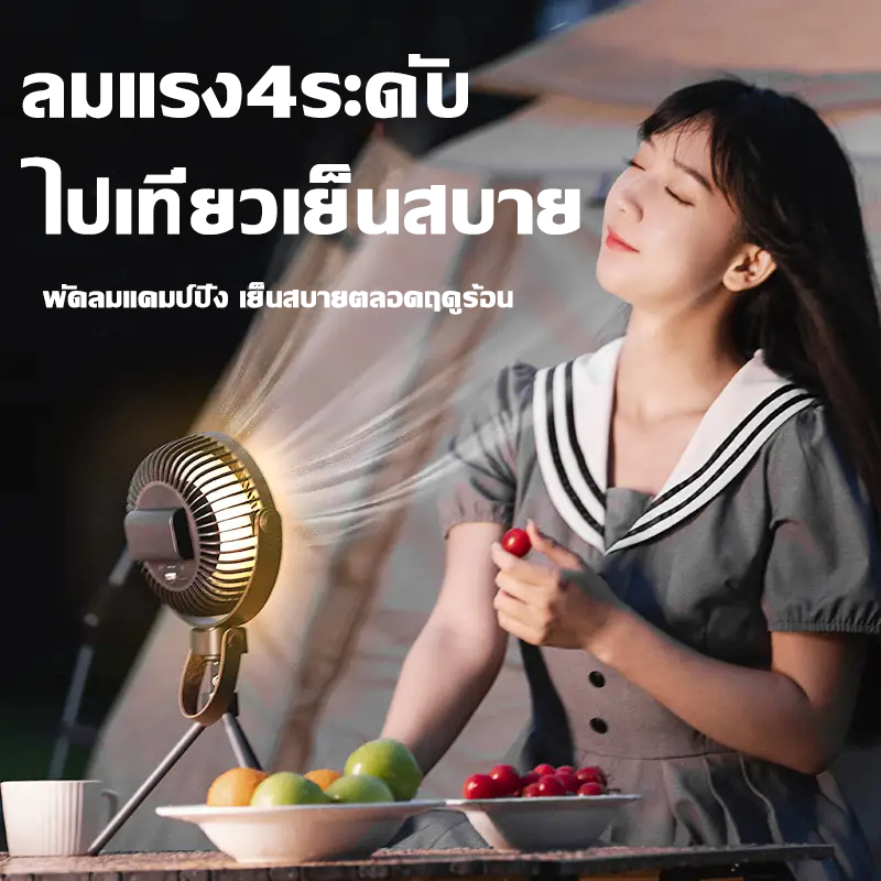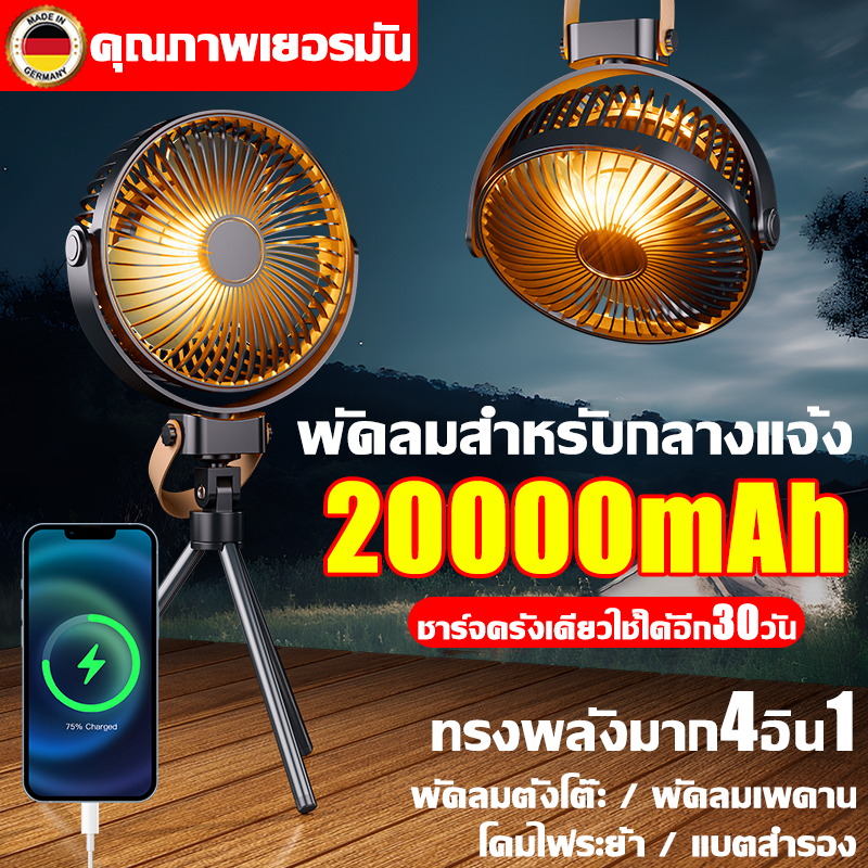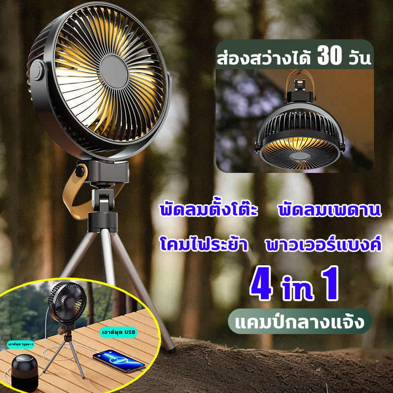 20000mAhใช้งานยาวนาน พัดลมแคมป์ปิ้ง พัดลมพกพา 4เกียร์ แรงชม/ไฟปรับได้ พัดลม usb เอนก์ฟังก์ชัน4in1 พร้อมขาตั้ง พัดลมโคมไฟ
