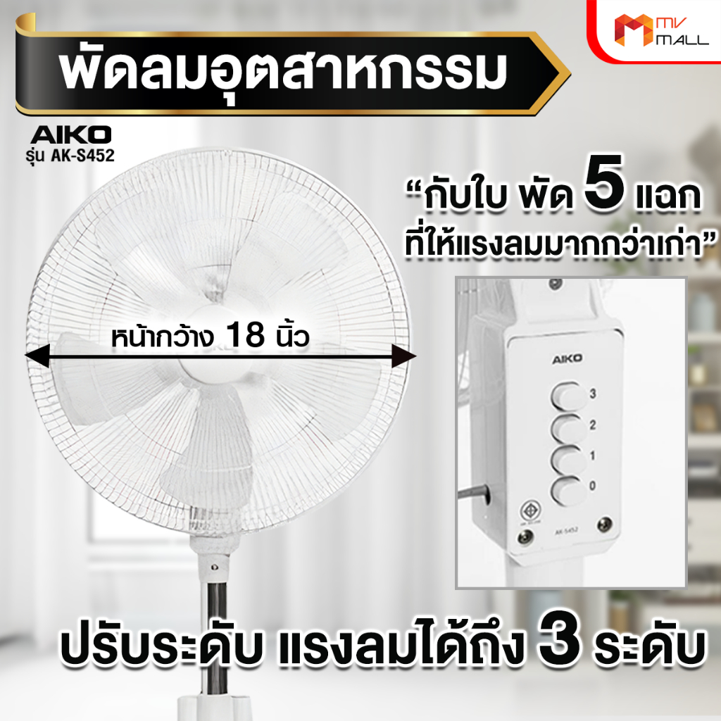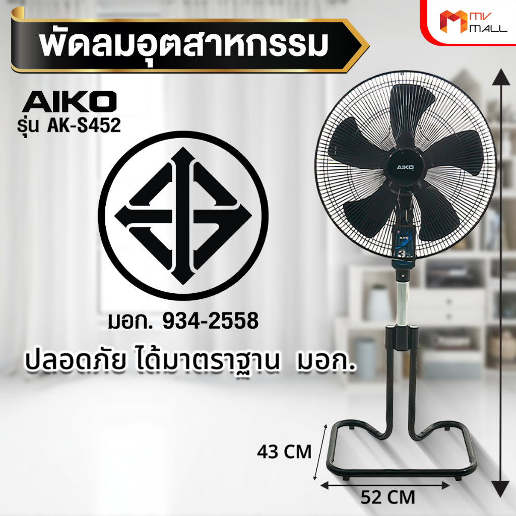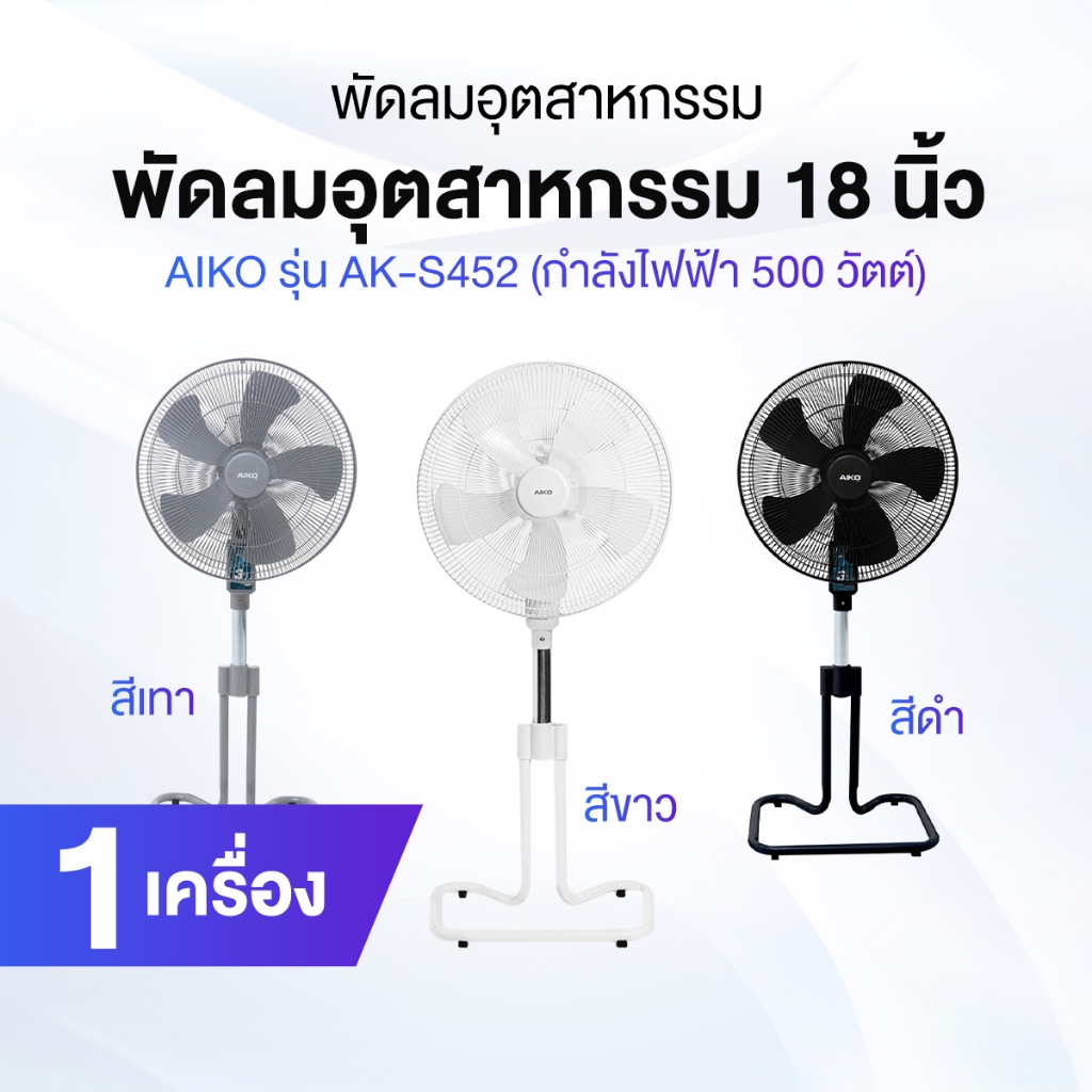 AIKO 18 นิ้ว พัดลมอุตสาหกรรม มีโหมดปรับลม 5 ระดับ รุ่น AK-S452 แข็งแรง ทนทาน พร้อมปลั๊ก Universal