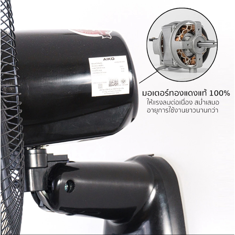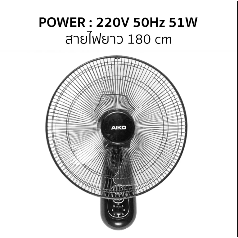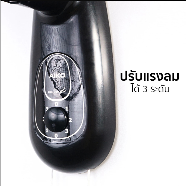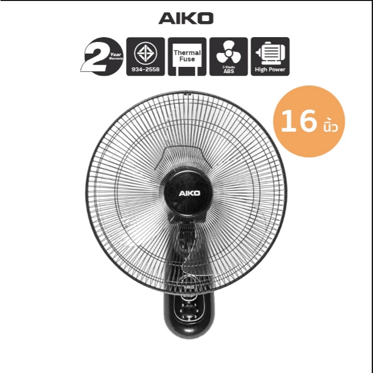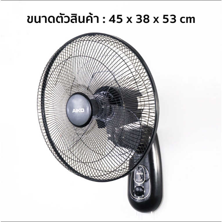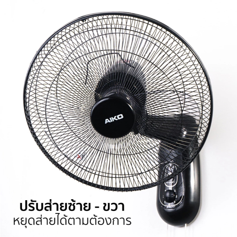 AIKO รุ่น SM-1635 สีดำ พัดลมติดพนัง ใบพัด 16 นิ้ว เชือก 2 เส้น