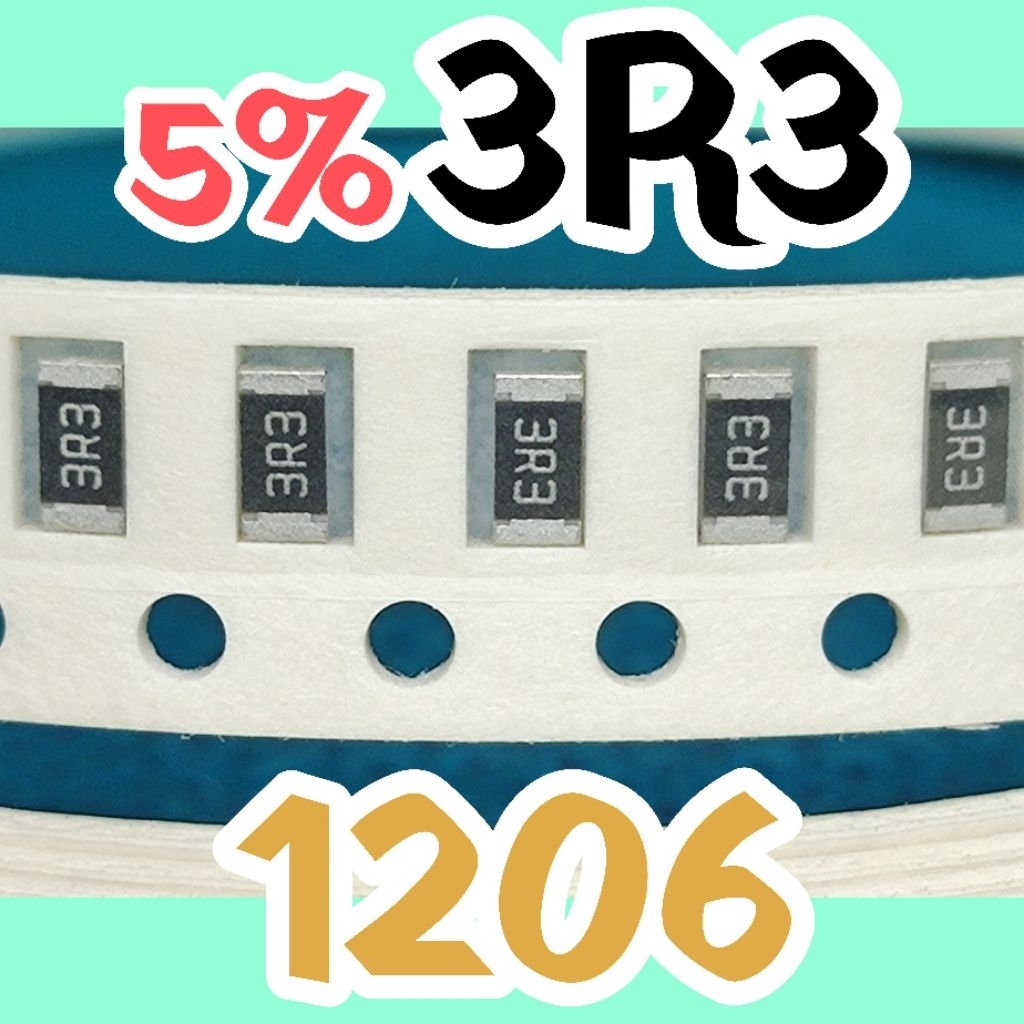 10 ชิ้นตัวต้านทานชิป smd 3R3 5% ขนาด 1206 3216 3.3ohm 3.3 ohm 3.3 ohm 3.3 โอห์ม
