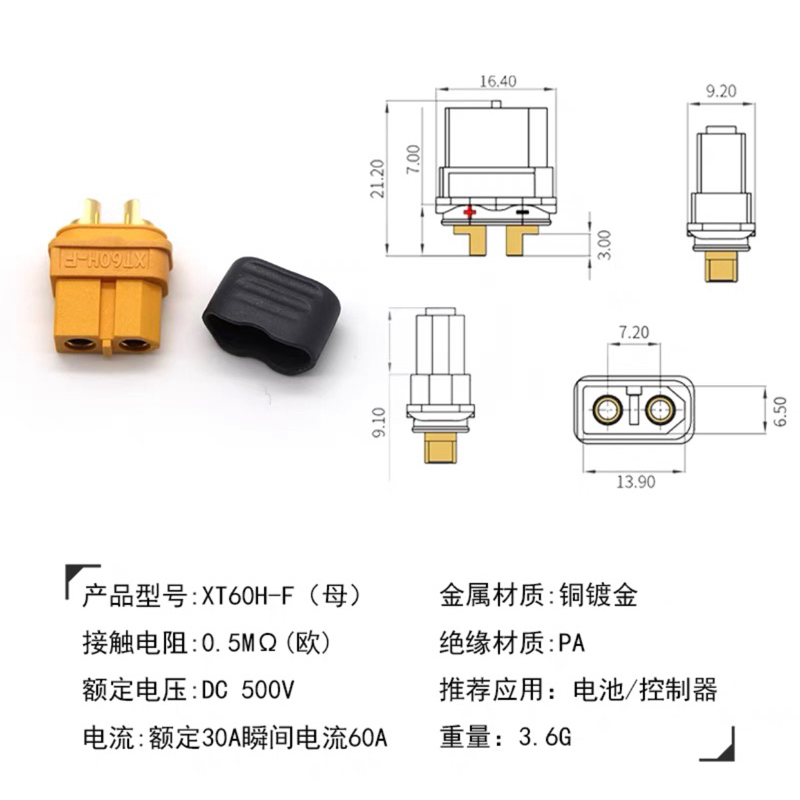 Amass ปลั๊กขั้วต่อ XT60H Connector (ตัวเมีย) ปลั๊ก RC แบบมีฝาปิดด้านท้ายสีดำ *สินค้าพร้อมส่งในไทย*