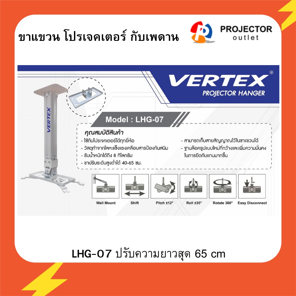 ขาแขวนโปรเจคเตอร์ VERTEX Projector Hanger ขาปรับระดับได้ 40-65 ซม.(LHG-07)