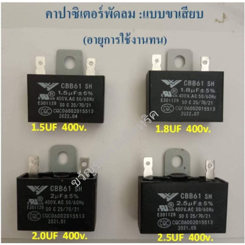 คาปาซิเตอร์ พัดลม 1.5UF/1.8UF/2UF/2.5UF แบบขั้วเสียบ ซีพัดลม แคปพัดลม อะไหล่พัดลม