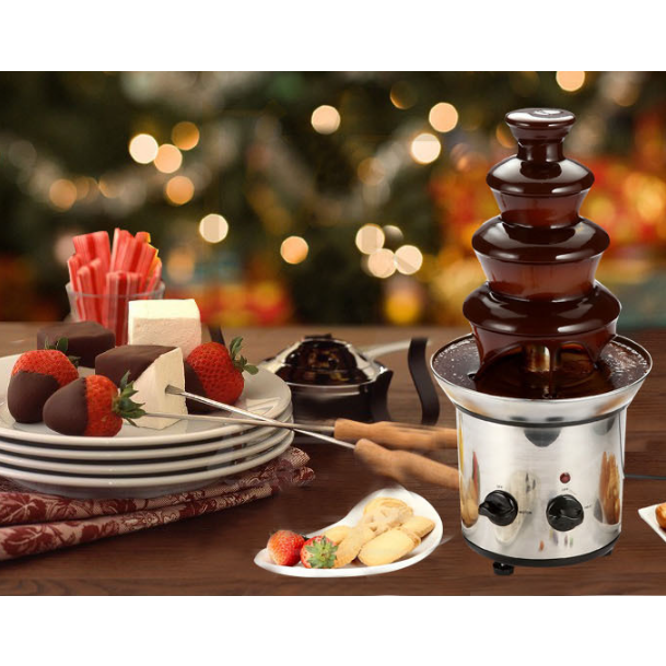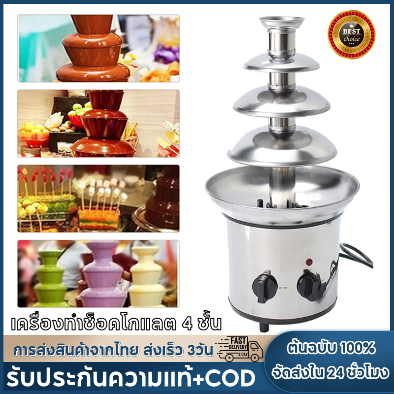 【จัดส่ง2วัน】4 ชั้นช็อคโกแลตน้ำพุน้ำตกเครื่องละลาย 220V สแตนเลสช็อคโกแลต DIY มินิน้ำตกหม้อไฟออกแบบเครื่อง