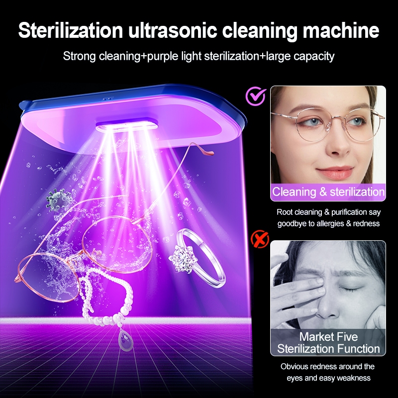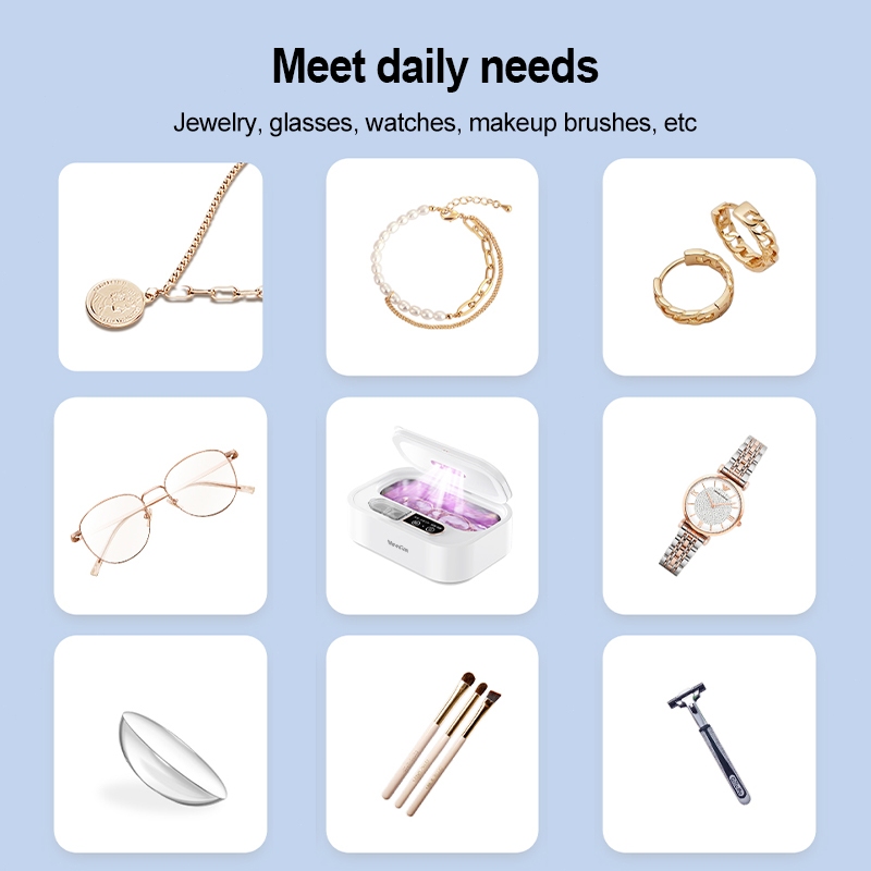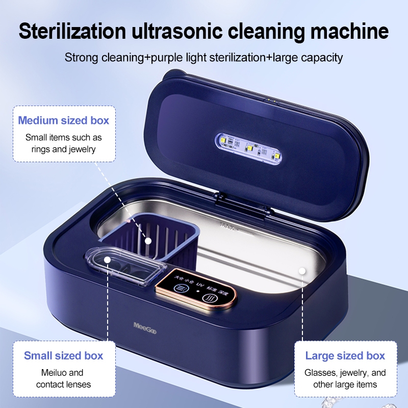 MeeGoo Ultrasonic Cleaner เครื่องทําความสะอาดอัลตราโซนิก การสั่นสะเทือนความถี่สูงอัตโนมัติ ฆ่าเชื้อด้วยรังสียูวี UV