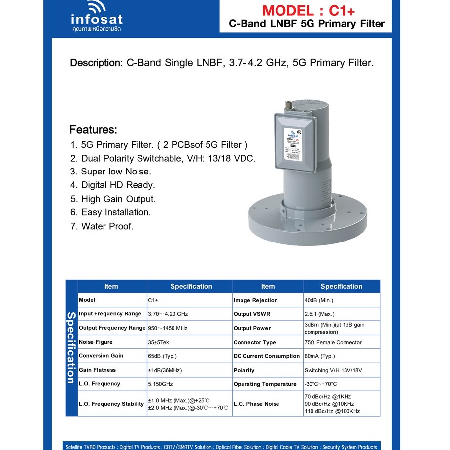 Infosat LNB ป้องกัน 5G C-Band 1 และ 2 จุด รุ่น C1+, C2+ อินโฟทของแท้รับประกัน 1ปี