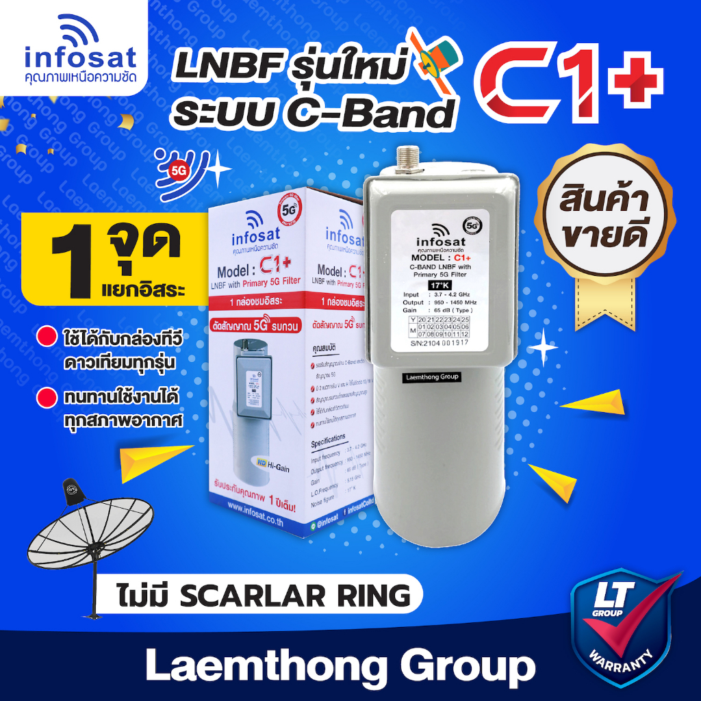 infosat lnb c1+ 5g filter c-band หัวรับดาวเทียม 1จุด จานตะแกรง (ตัดสัญญาณ 5G) ไม่มี scalar : ltgroup
