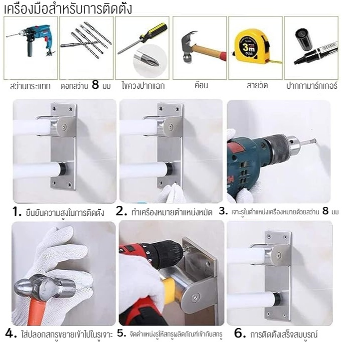 กิโลกรัม เหมาะสําหรับผู้สูงอายุ รับน้ำหนักได้ 150 ราวช่วยพยุง ราวจับในห้องน้ำ ราวจับกันลื่นในห้องน้ํา สแตนเลสเกรด304