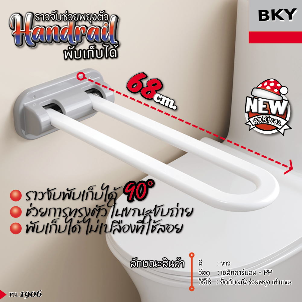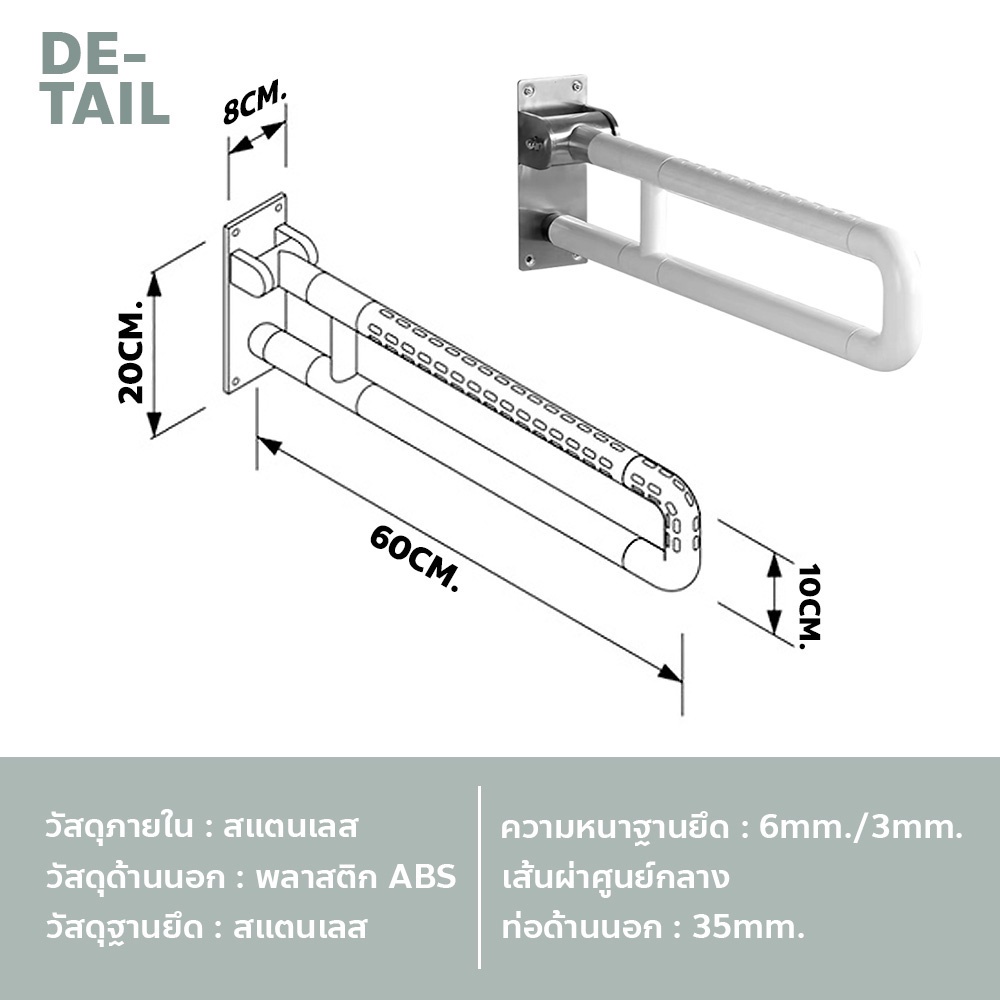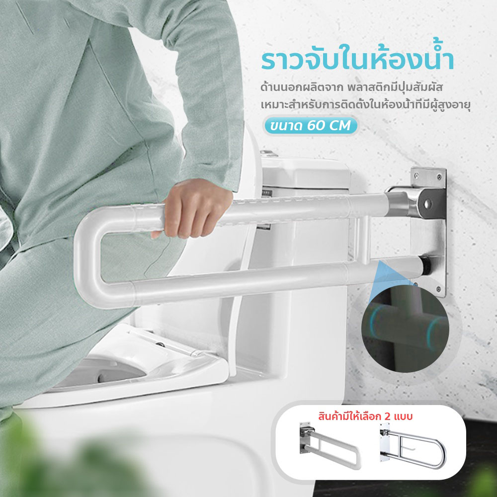 MAO ราวจับในห้องน้ำ พับขึ้น-ลงได้ ราวสแตนเลส หุ้มพลาสติก ขนาด 60cm.