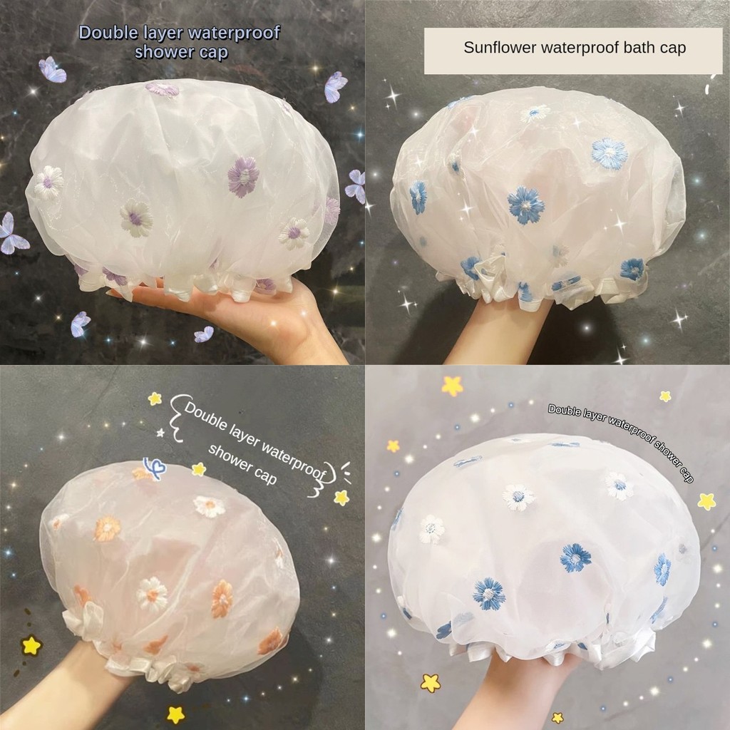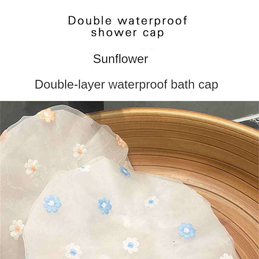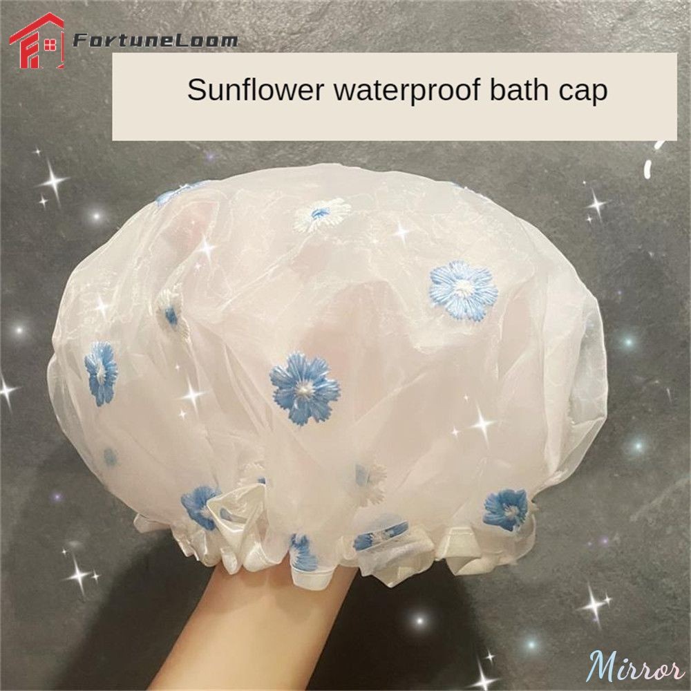 【COD】 ♕ หมวกอาบน้ำ 2 ชั้นลายดอกทานตะวัน กันน้ำ สไตล์สดชื่น หมวกอาบน้ำหนาและป้องกันไอน้ำมัน 【FortuneLoom】