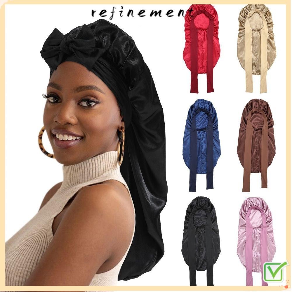 Refinement หมวกคลุมผม ผ้าซาติน ปรับได้ สําหรับผู้หญิง เหมาะกับการนอน พิธีดูแลเส้นผม