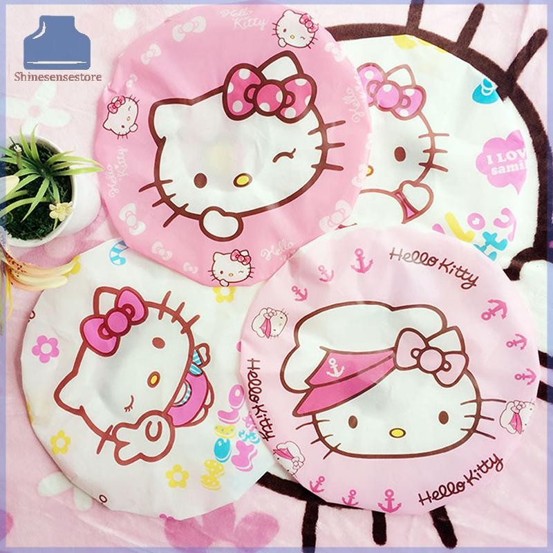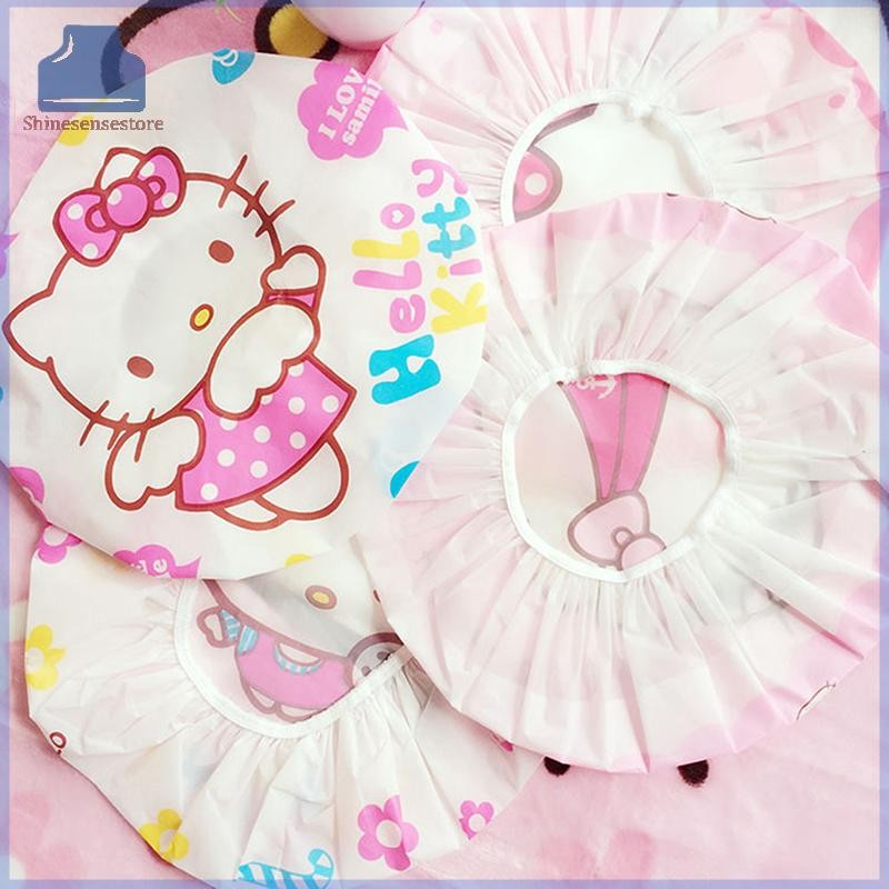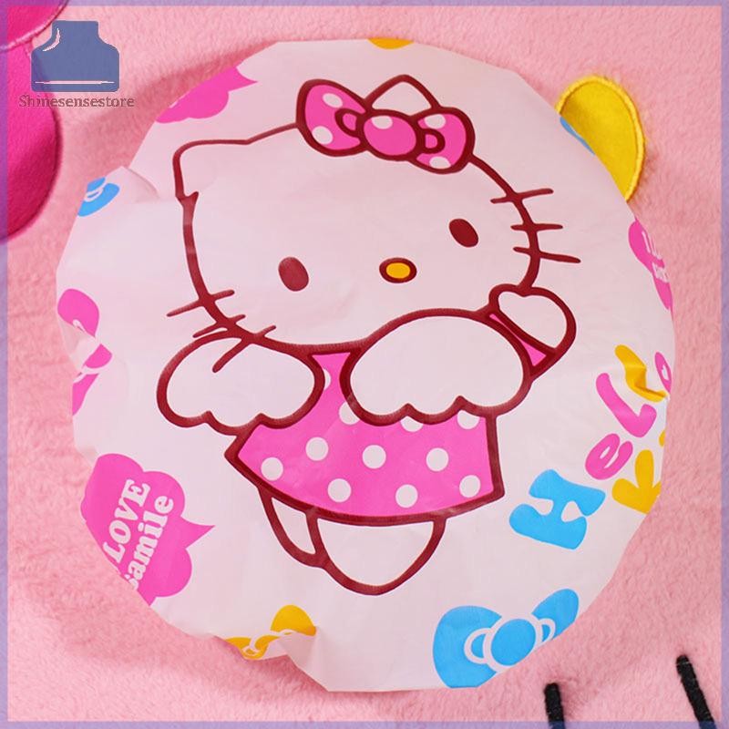 CAJA1 หมวกอาบน้ําผู้หญิง,Hello Kittyญี่ปุ่นการ์ตูนหมวกอาบน้ํา,น่ารักยืดหยุ่นมิกกี้นํามาใช้ใหม่หมวกอาบน้ําผมห้องน้ําผลิตภัณฑ์