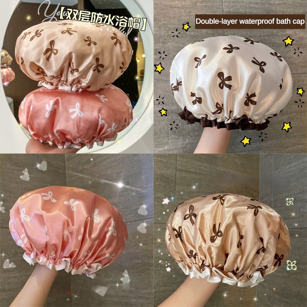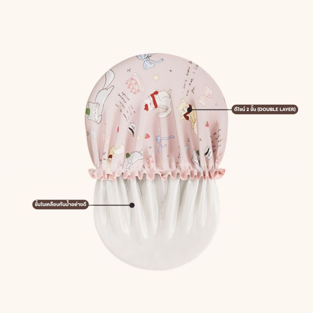 ♫ หมวกอาบน้ำสองชั้น กันน้ำ คลุมผมผู้หญิง หมวกอาบน้ำเด็ก ผู้ใหญ่