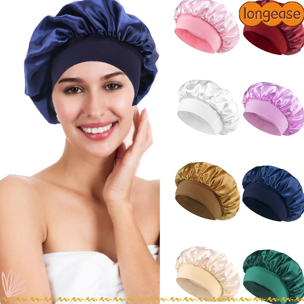 Longe ยาว Hair Care Bonnet, ขนาดใหญ่เลียนแบบผ้าไหมซาตินหมวกอาบน้ํา,สะดวกซาติน Elastic Edge Wrap Soft Night Sleep หมวกสําหรับผู้หญิง