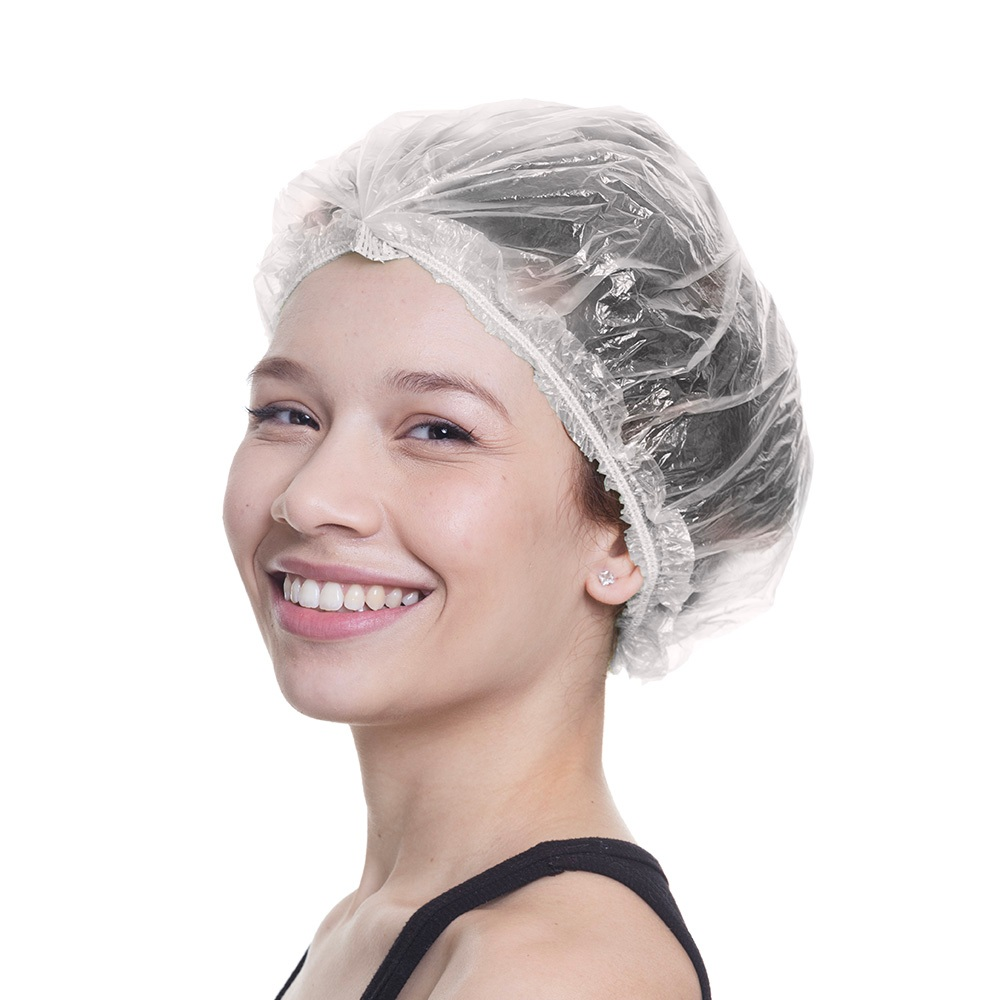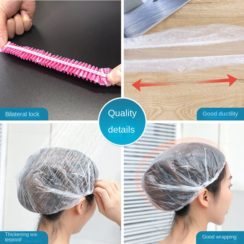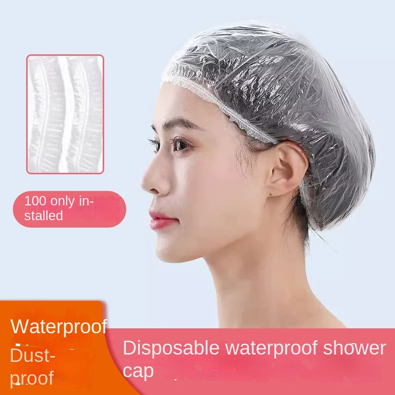 100ชิ้นทิ้งหมวกอาบน้ํากันน้ําโปร่งใสบ้านโรงแรมอาบน้ําฝุ่นหมวกร้านทําผม