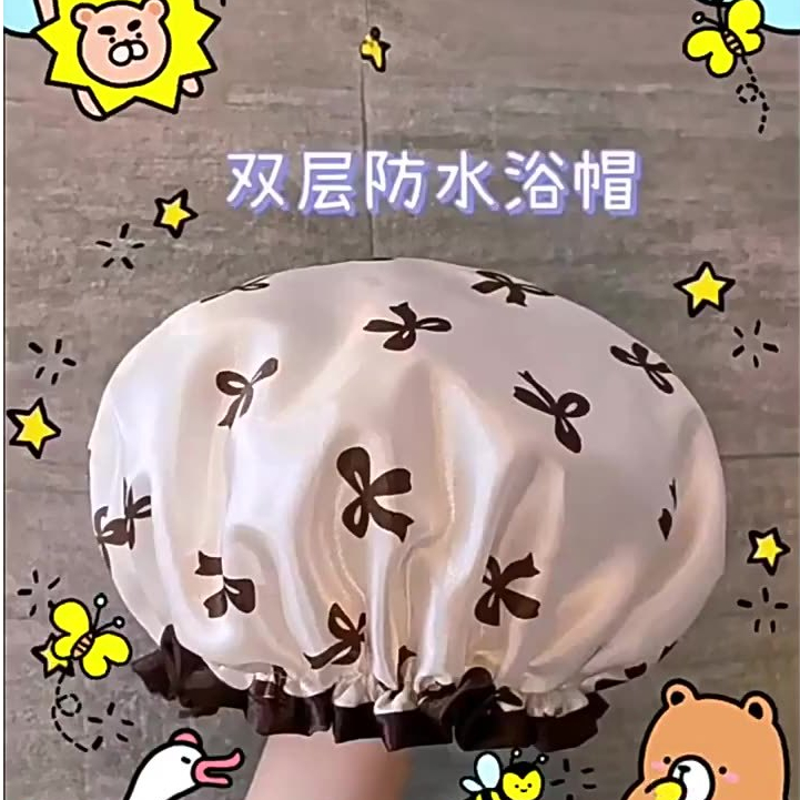 หมวกคลุมผมอาบน้ำ หนาพิเศษ2ชั้น กันน้ำ เหนียวทนทาน ลายน่ารัก Shower cap ผมแห้ง หมวกอาบน้ำ ลายการ์ตูน ผ้าเช็ดตัว ผ้าคลุมผม