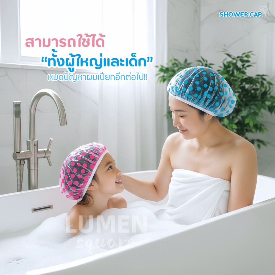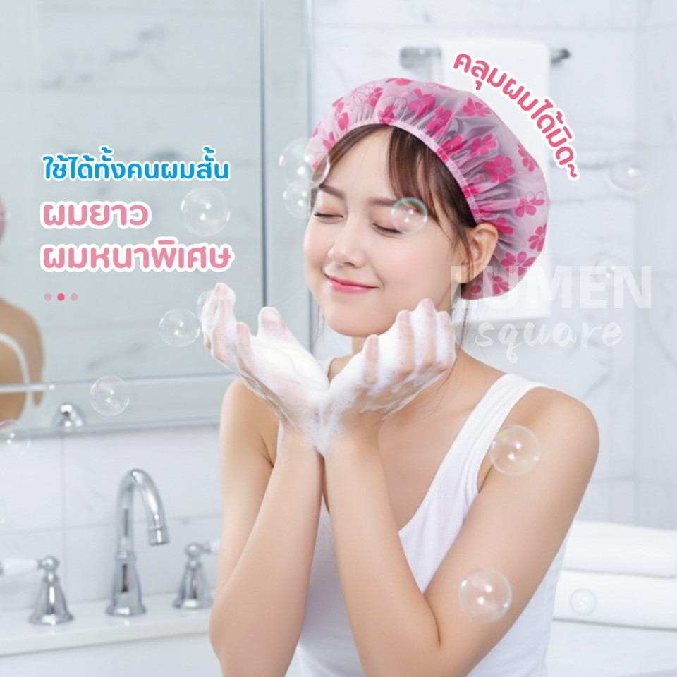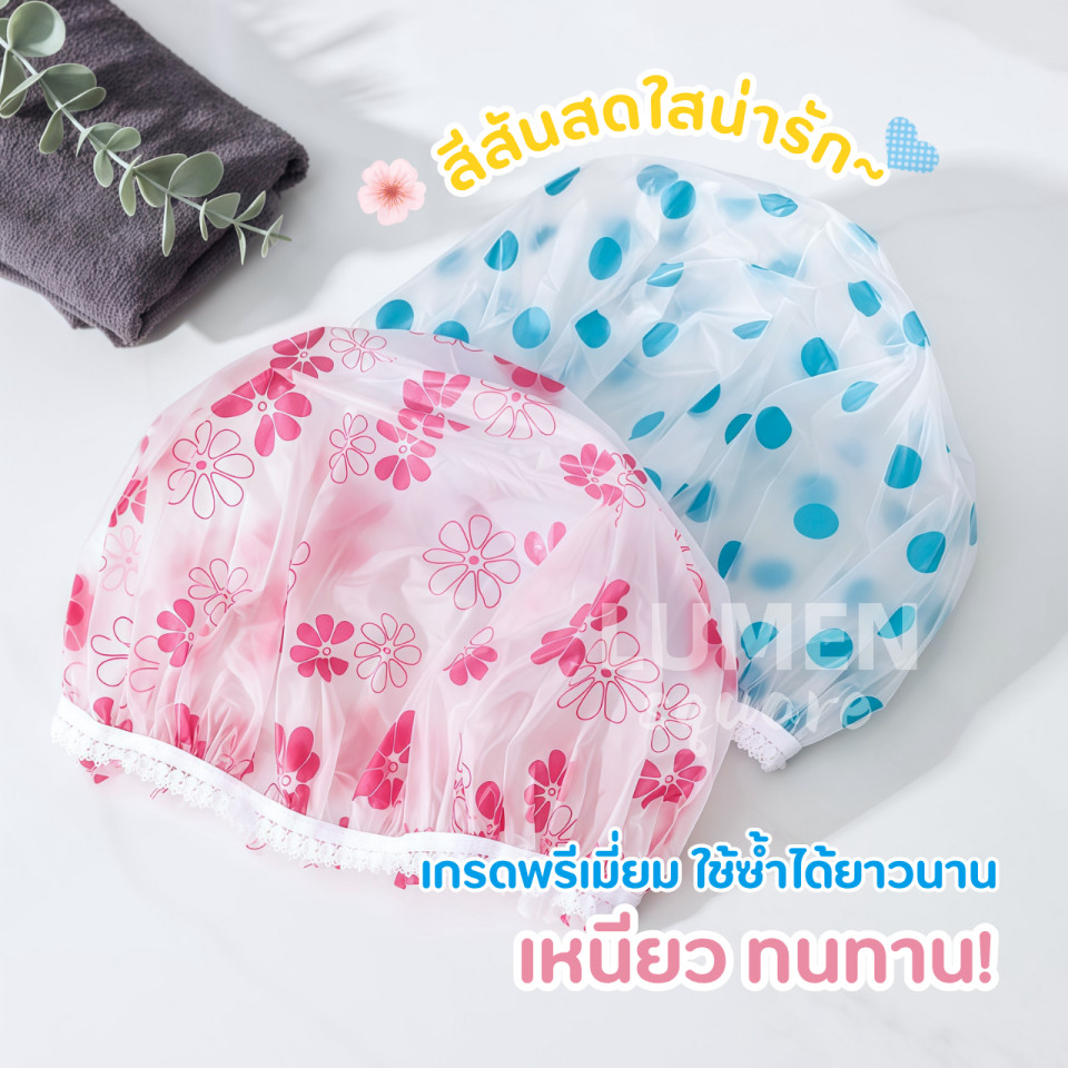 หมวกคลุมผมอาบน้ำคัดคุณภาพอย่างดี รุ่น หนากำลังดี ผ้านุ่ม ยางนุ่ม สัมผัสนุ่ม ดีด้วย น่ารักด้วย หมวกคลุมผม Shower Cap