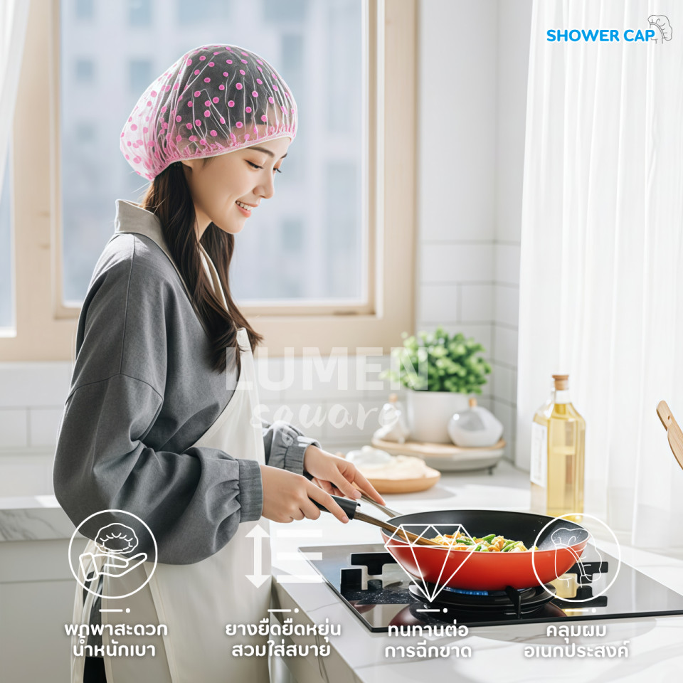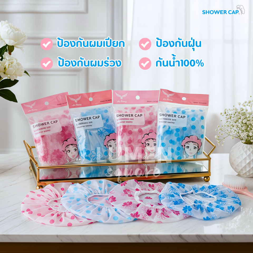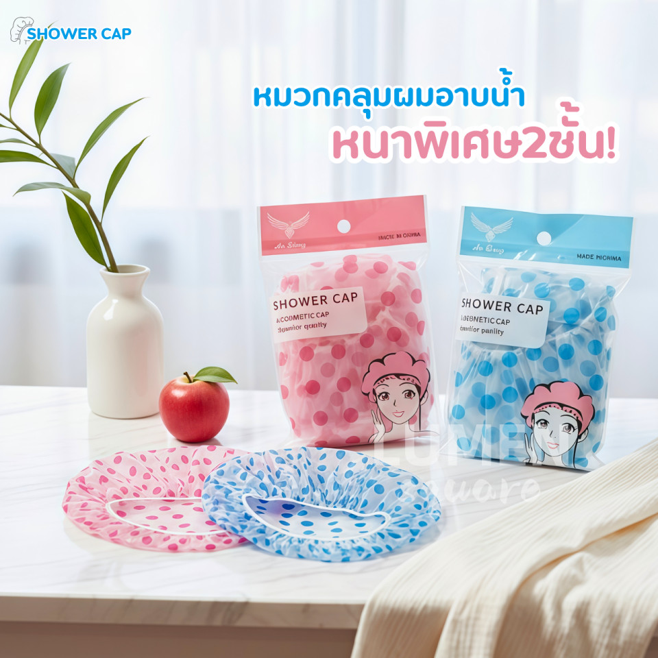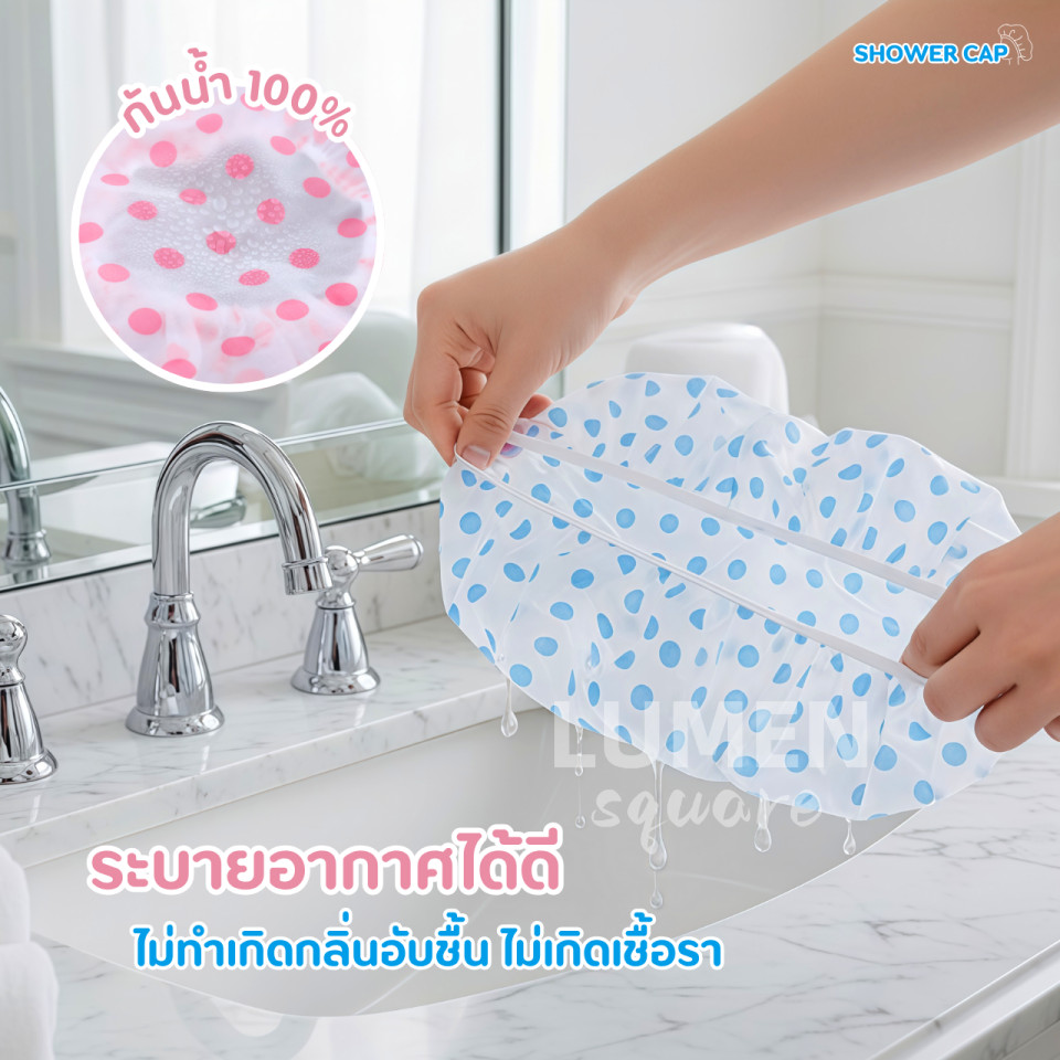 หมวกคลุมผมอาบน้ำคัดคุณภาพอย่างดี รุ่น หนากำลังดี ผ้านุ่ม ยางนุ่ม สัมผัสนุ่ม ดีด้วย น่ารักด้วย หมวกคลุมผม Shower Cap