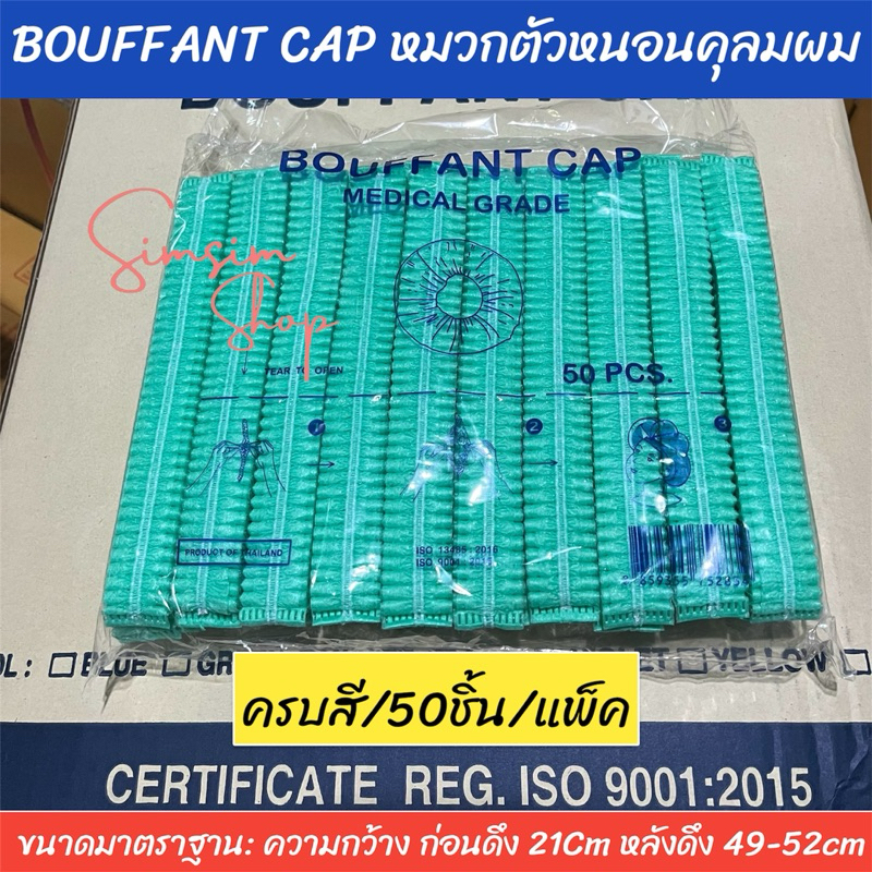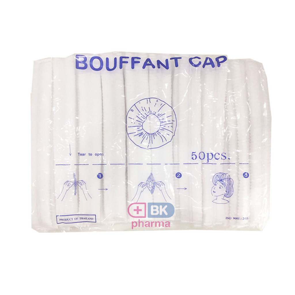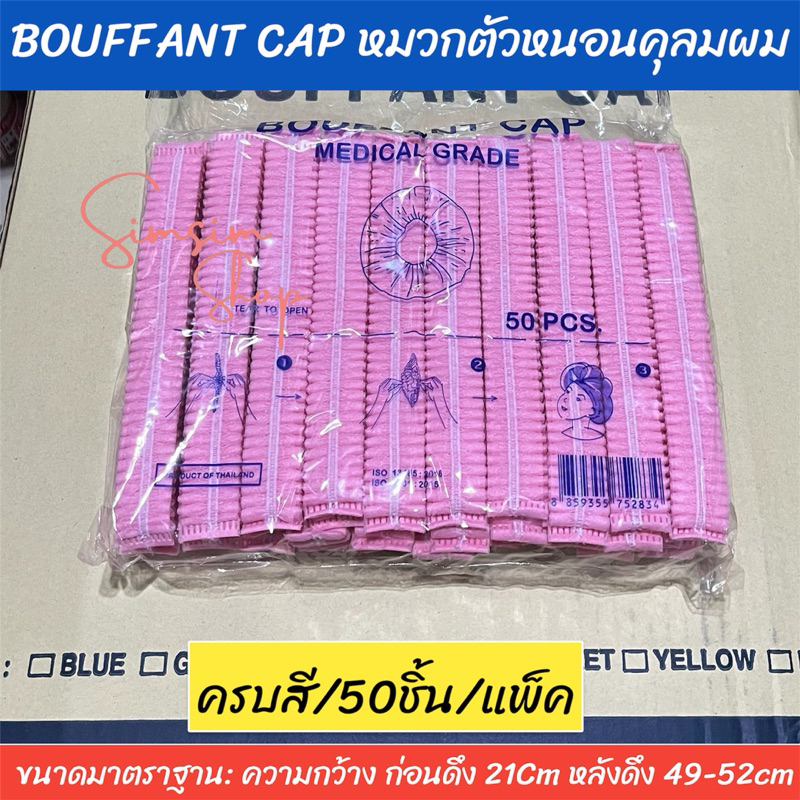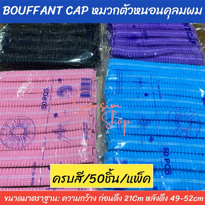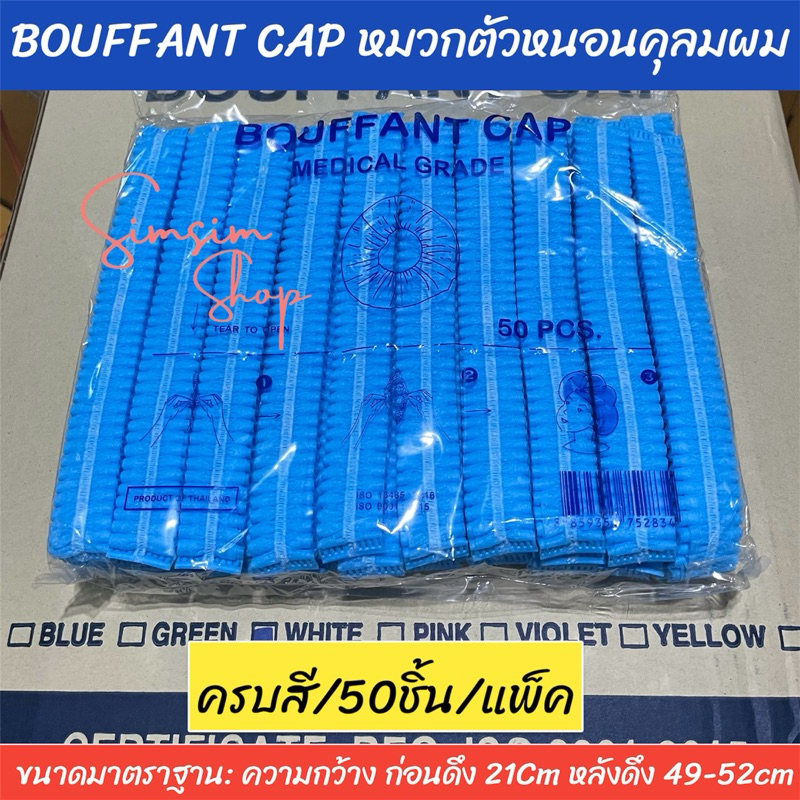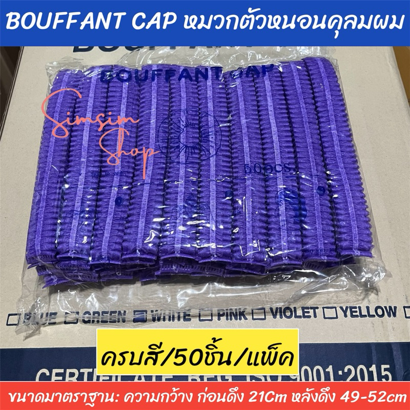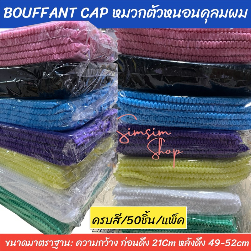 หมวกตัวหนอนคลุมผมใยสังเคราะห์ BOUFF ANT CAP (เกรด ร.พ งานไทย] แพ็ค 50ชิ้น หนา 14แกรม ยาว 21 cm ดึงยืดได้ ถึง 49-52cm