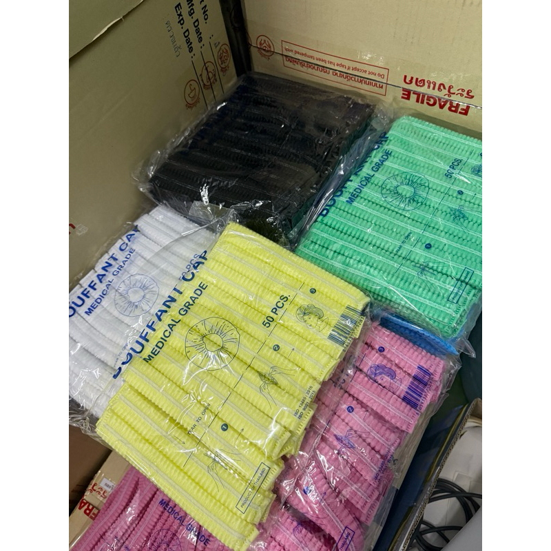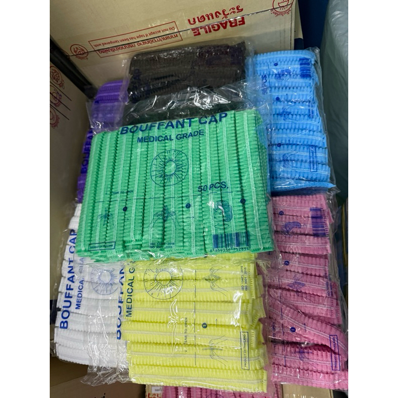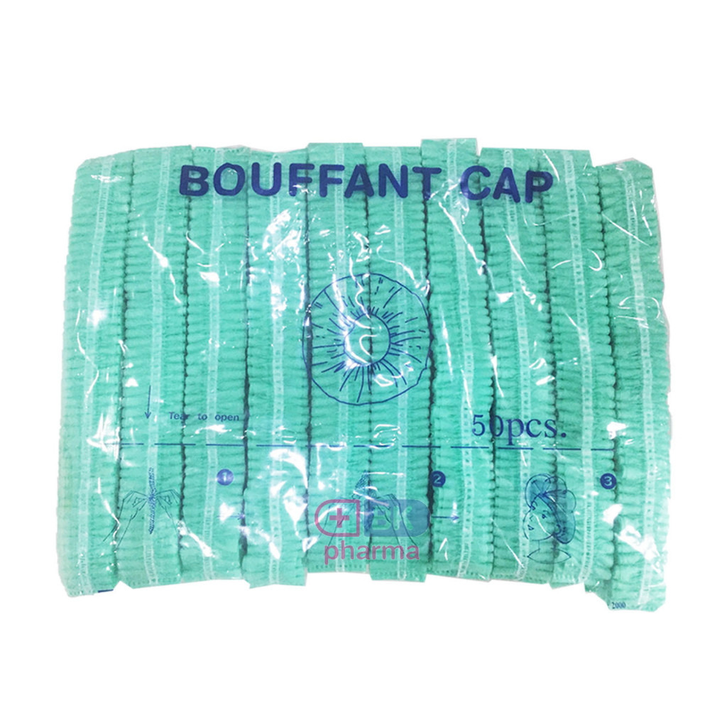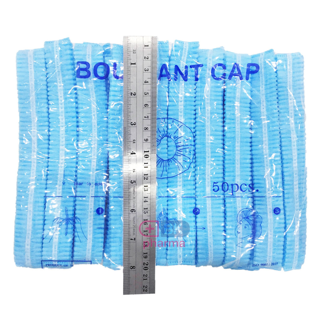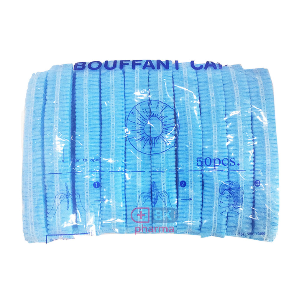 หมวกตัวหนอนคลุมผมใยสังเคราะห์ BOUFF ANT CAP (เกรด ร.พ งานไทย] แพ็ค 50ชิ้น หนา 14แกรม ยาว 21 cm ดึงยืดได้ ถึง 49-52cm