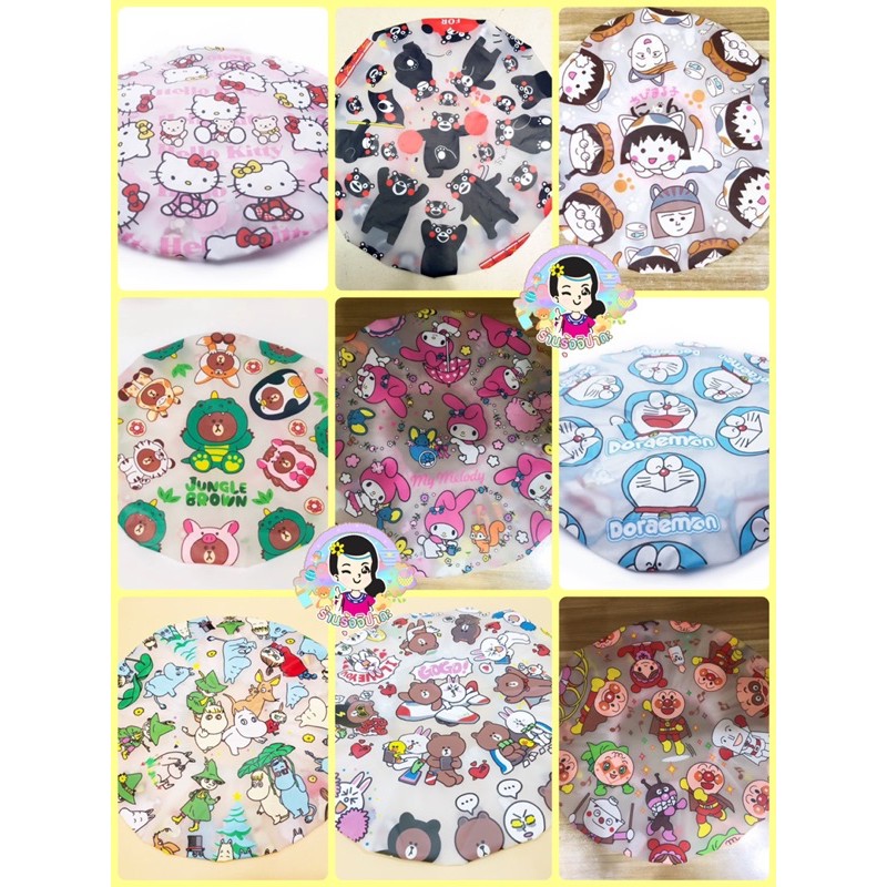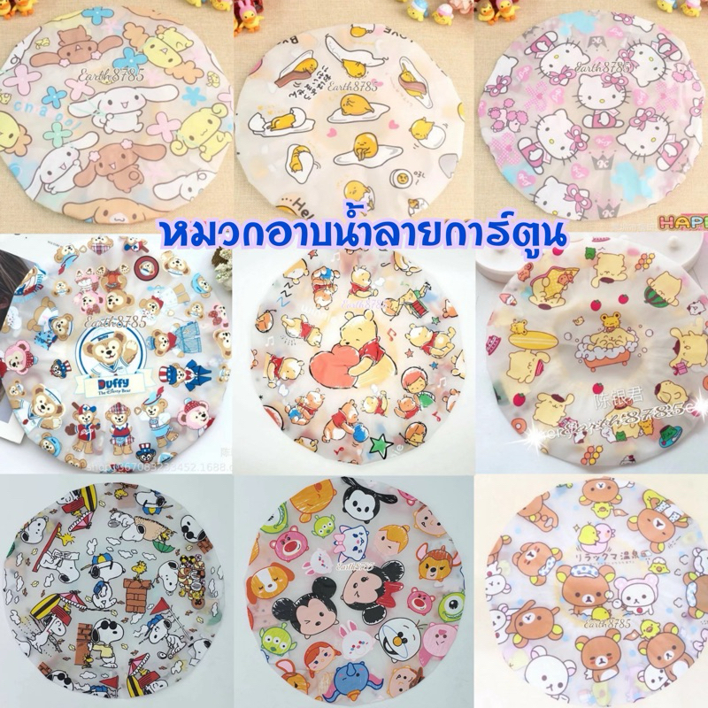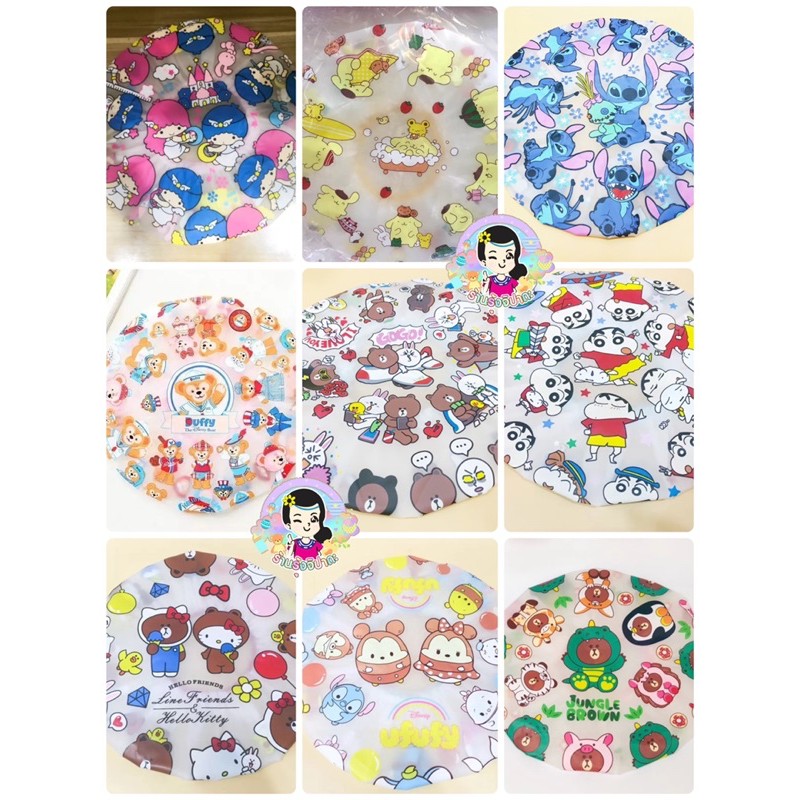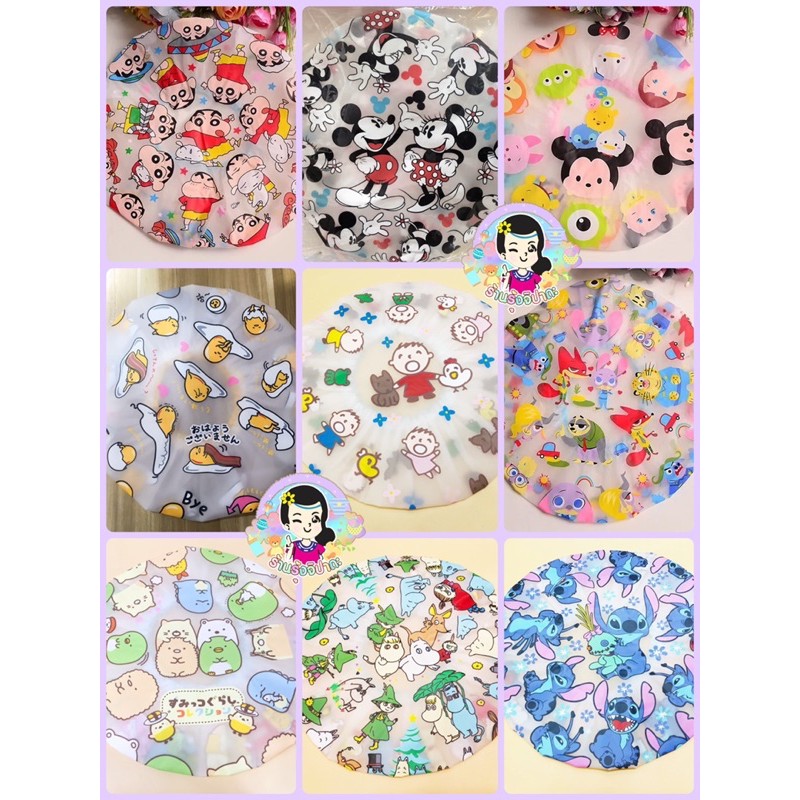 หมวกอาบน้ำลายการ์ตูน หมวกคุมผมอาบน้ำ มีทั้งหมด 19 ลาย ใช้ได้ทั้งเด็กและผู้ใหญ่ มียางยืด