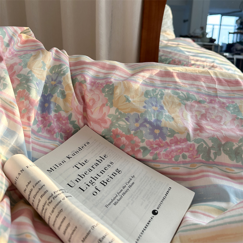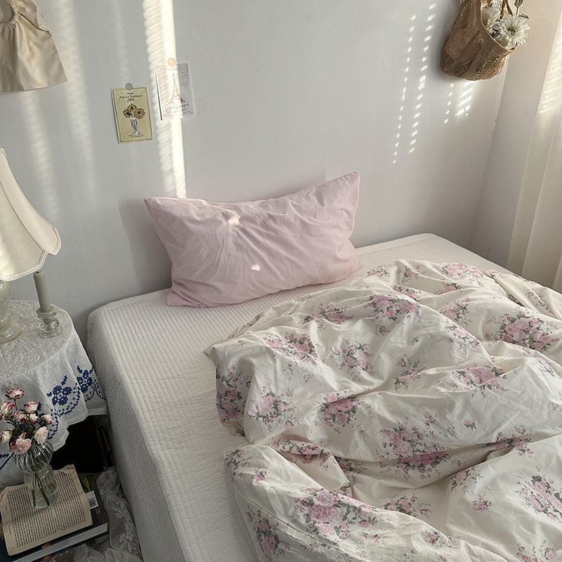 Ins Style ชุดเครื่องนอน ผ้าห่ม ผ้าฝ้าย 100% ลายดอกไม้ สีชมพู สําหรับเตียงเดี่ยว ควีนไซซ์ คิงไซซ์