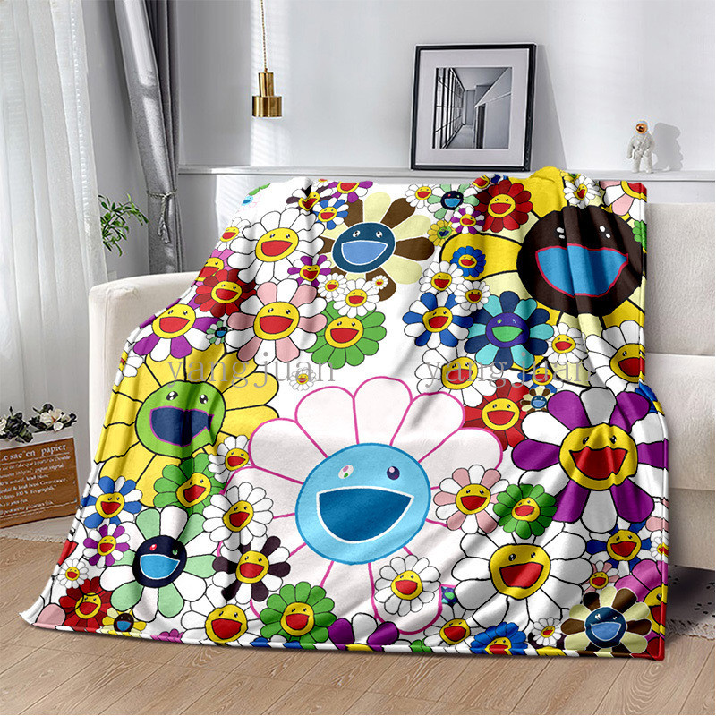 Murakami Takashi ผ้าห่มขนแกะนุ่ม สบาย ลายหน้ายิ้ม ดอกทานตะวัน หลากสี 258