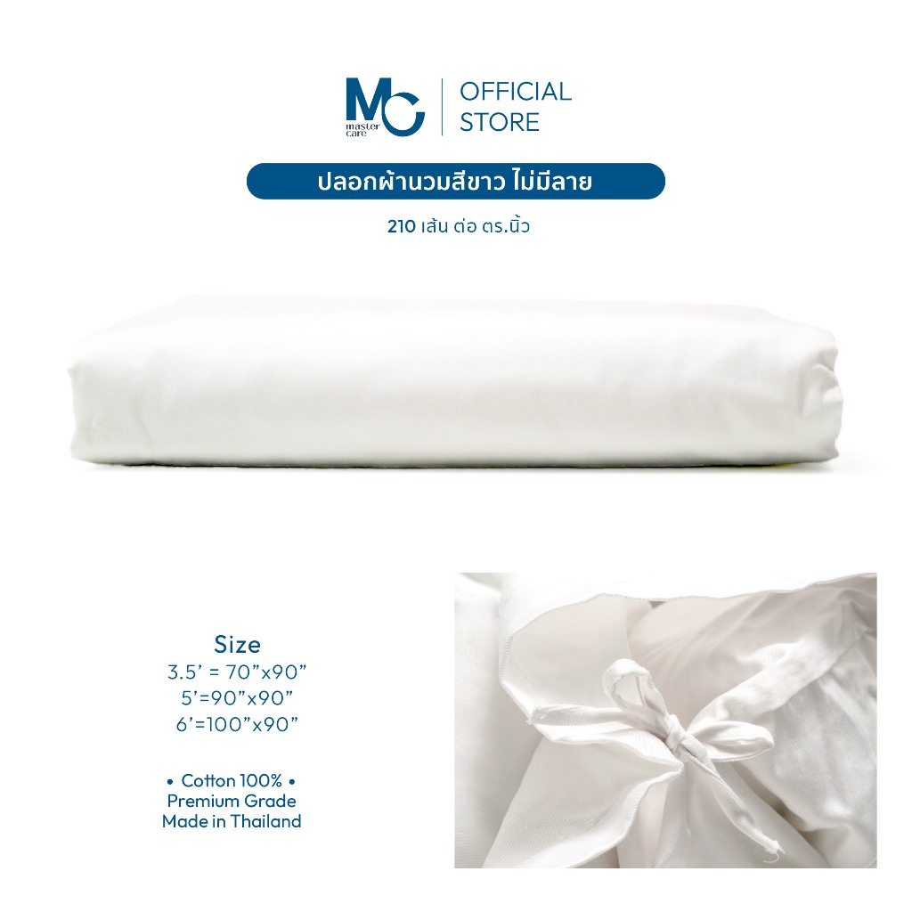 Master Care ปลอกผ้านวม คอตตอน 100% 210 เส้นด้าย สีขาว นุ่ม ระบายอากาศดี 3.5-6 ฟุต