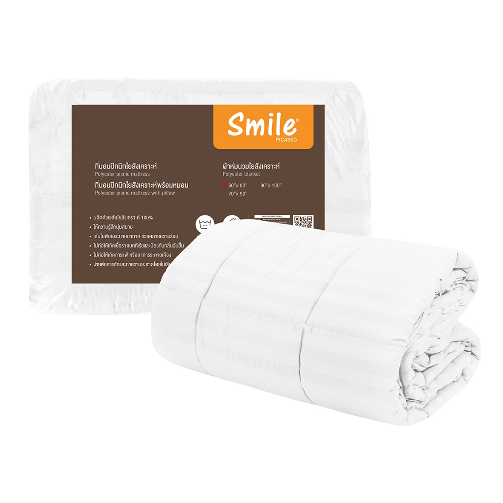 Picasso ผ้าห่มนวมใยสังเคราะห์ รุ่น Smile ลายริ้ว สีขาว / ผ้าไมโครซาติน