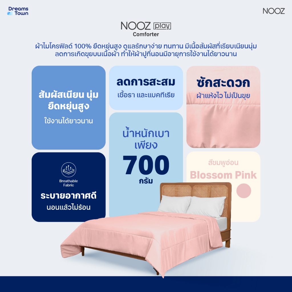 Nooz Play ผ้านวม ผ้าห่ม สัมผัสนุ่ม ไม่บาดผิว ทำจากผ้าไมโครฟิลด์ 100% ยืดหยุ่นสูง รุ่น Comforter สีชมพู Blossom Pink