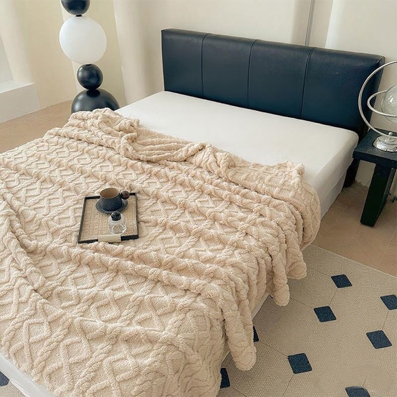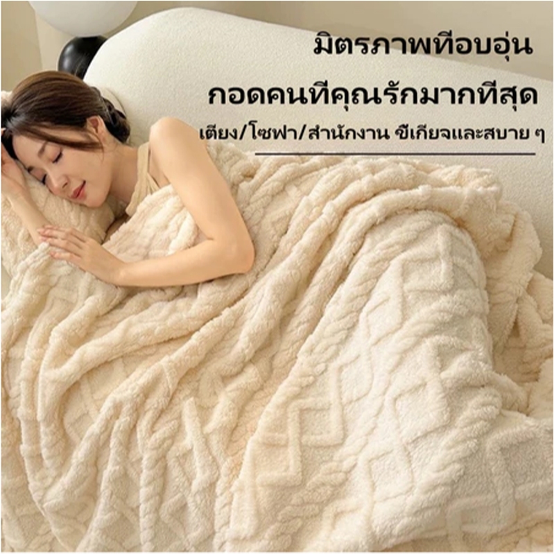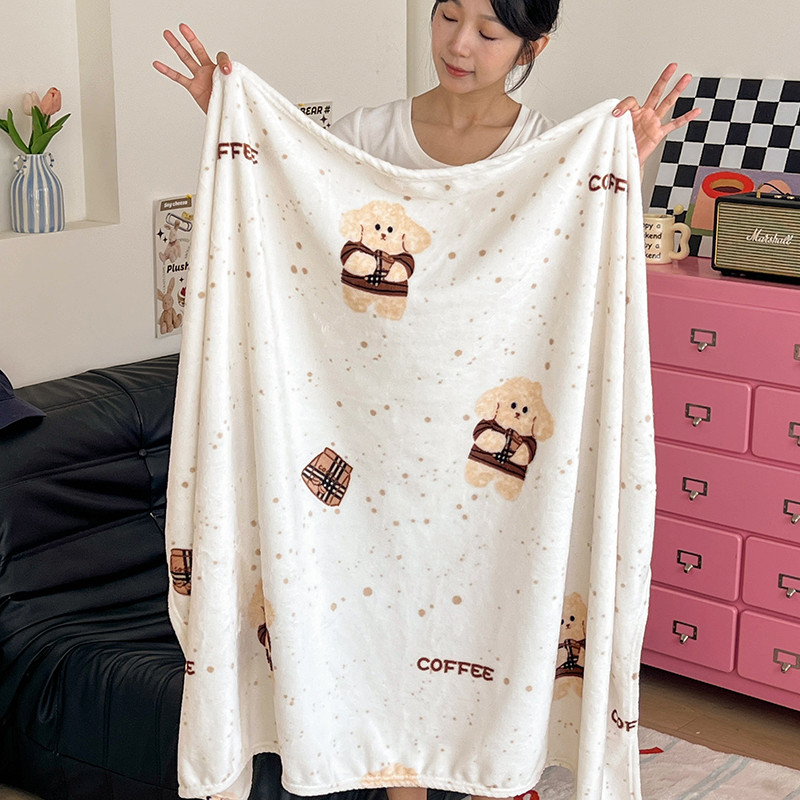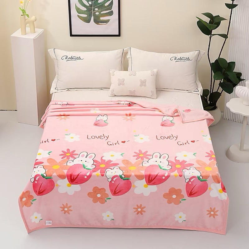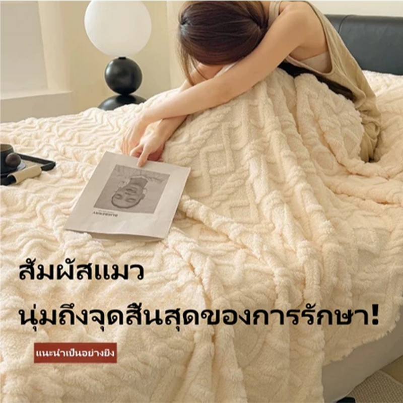 ผ้าห่มขนแกะนมสองด้านสไตล์สาวสีครีมสไตล์เกาหลีเดี่ยวควีน/ผ้าห่มขนาดคิงไซส์