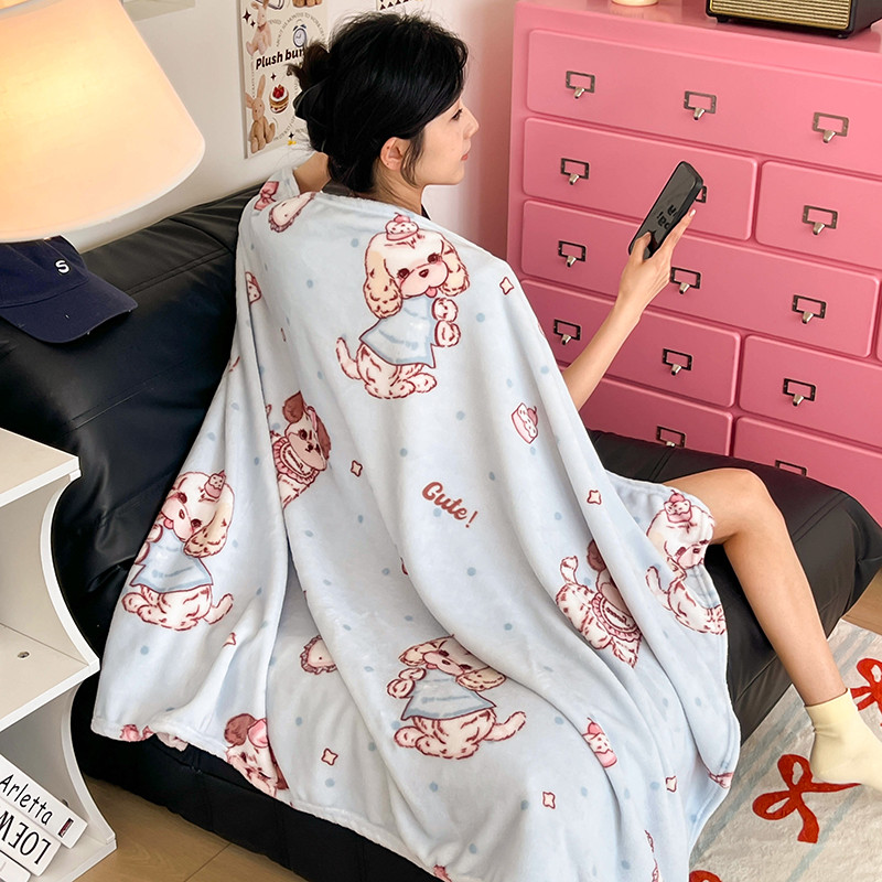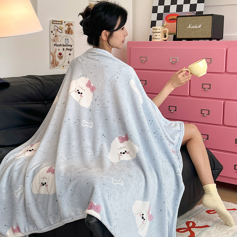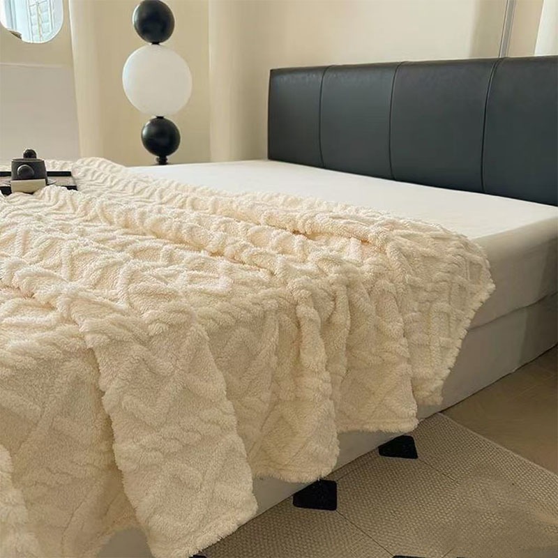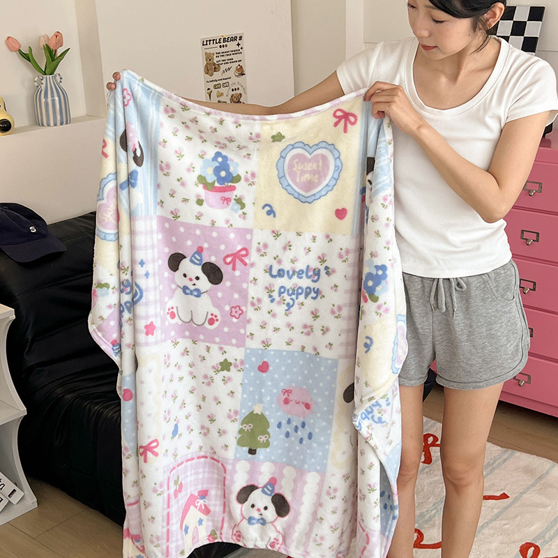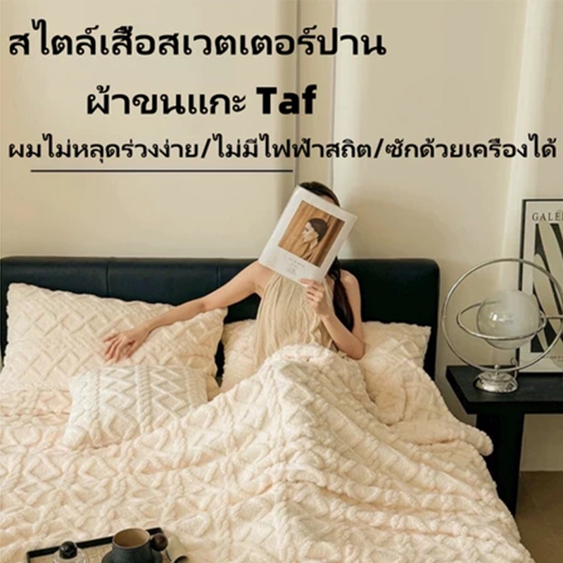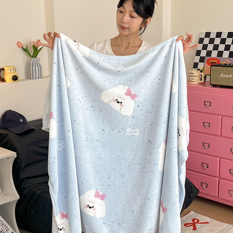 ผ้าห่มขนแกะนมสองด้านสไตล์สาวสีครีมสไตล์เกาหลีเดี่ยวควีน/ผ้าห่มขนาดคิงไซส์