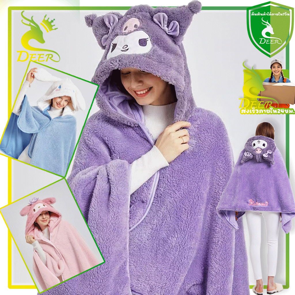 ผ้าห่มคลุมแอร์ Sanrio ลาย Kuromi, Melody, Cinnamoroll เนื้อผ้าขนปุย นุ่ม กันหนาว ปลอดภัย ขนาด 70*140CM