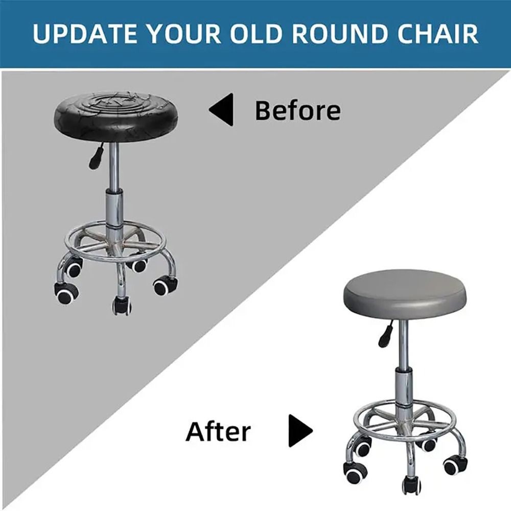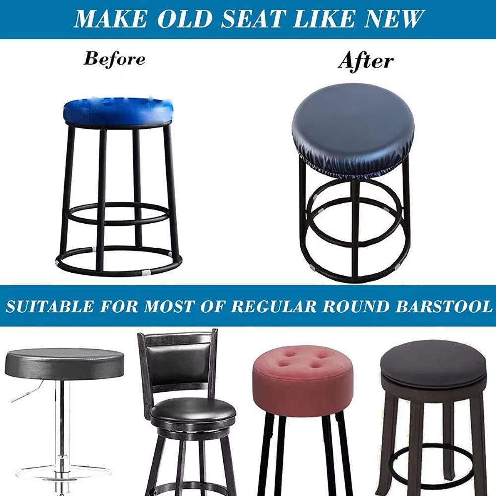 LUMINSCENCIA ผ้าคลุมเก้าอี้ทรงกลม 1 ชิ้น, กันน้ําพร้อมแถบยืดหยุ่นเก้าอี้เบาะรองนั่ง, หนัง PU ทนทานรวมทุกอย่าง 28-40 ซม.สตูลเบาะรองนั่งสําหรับเก้าอี้หมุนบาร์