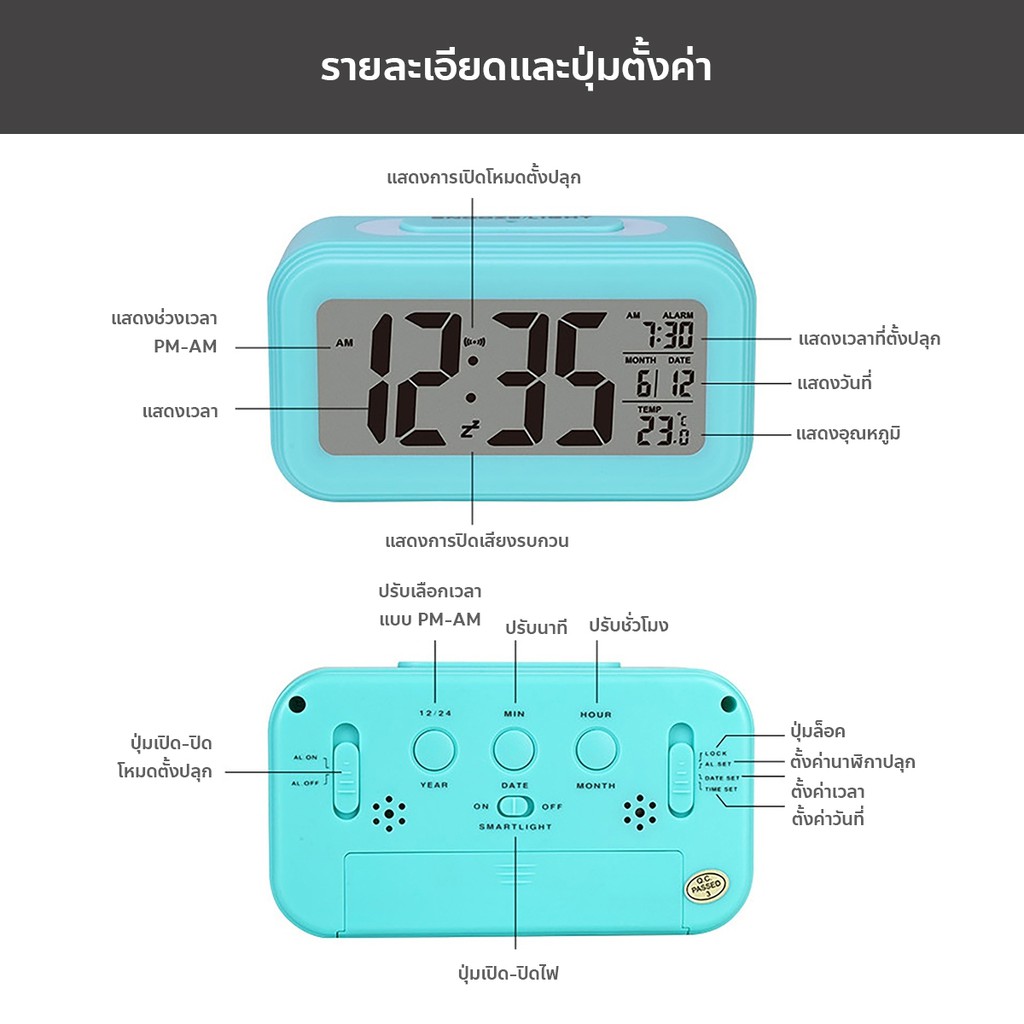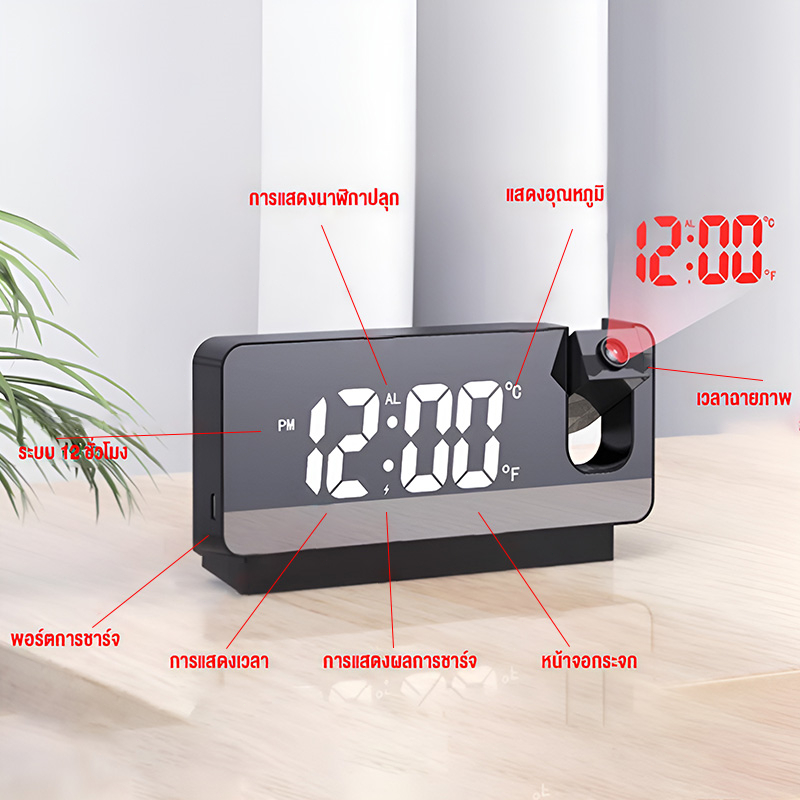 นาฬิกาปลุกตั้งโต๊ะ นาฬิกาดิจิตอล แสดงวันที่ เดือน อุณหภูมิ จอ LED / HomeUP
