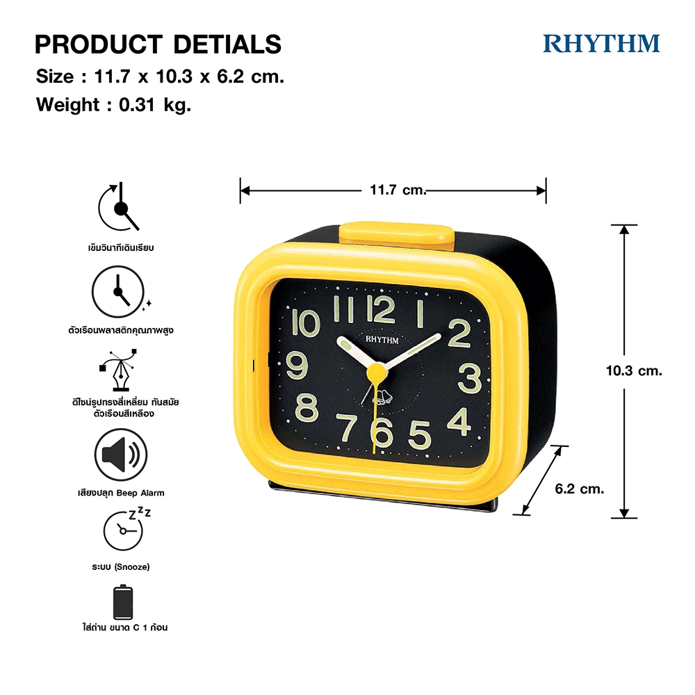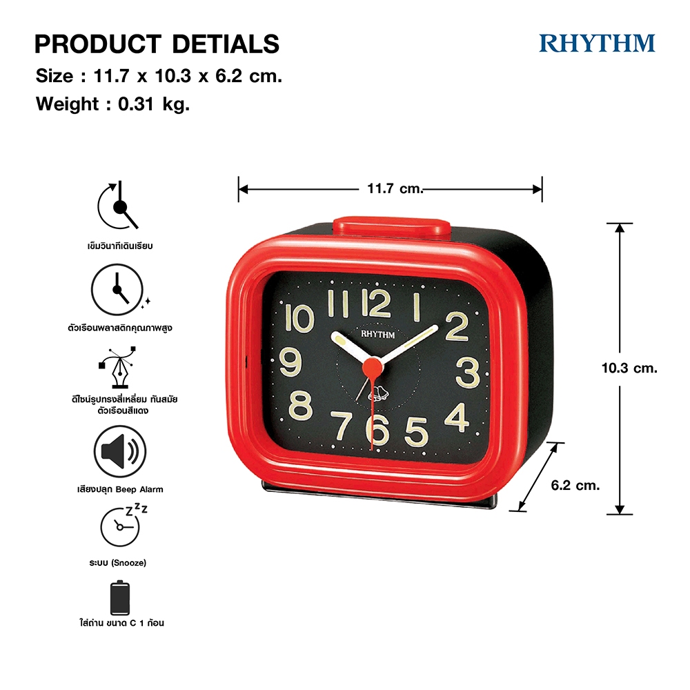 นาฬิกาปลุก RHYTHM นาฬิกาปลุกตั้งโต๊ะ เสียงปลุกดัง ขนาด 11.7 ซม.