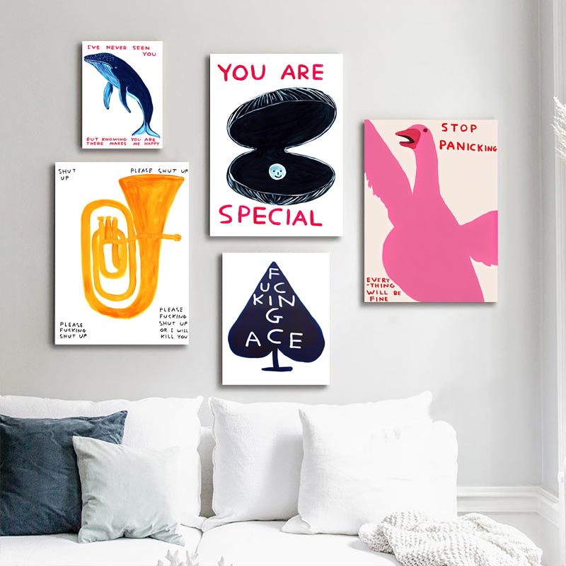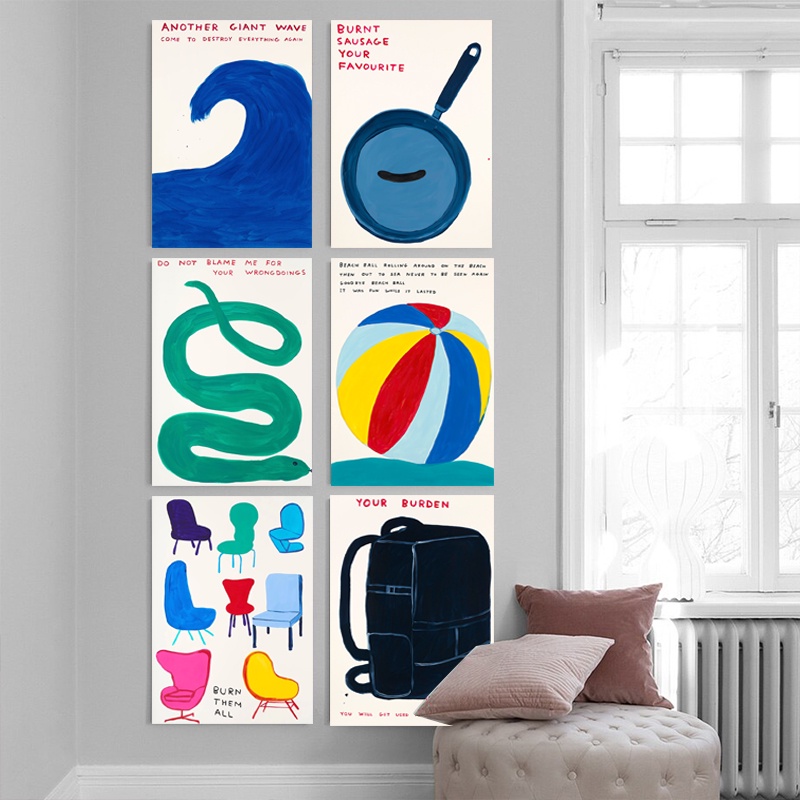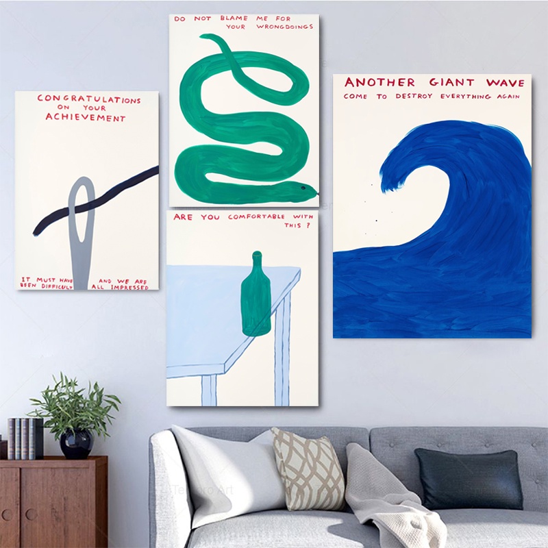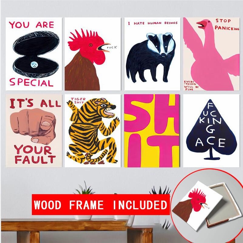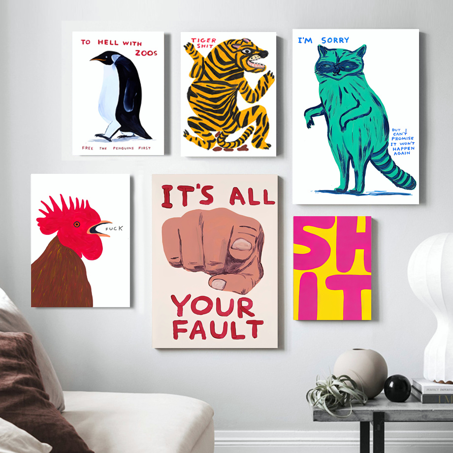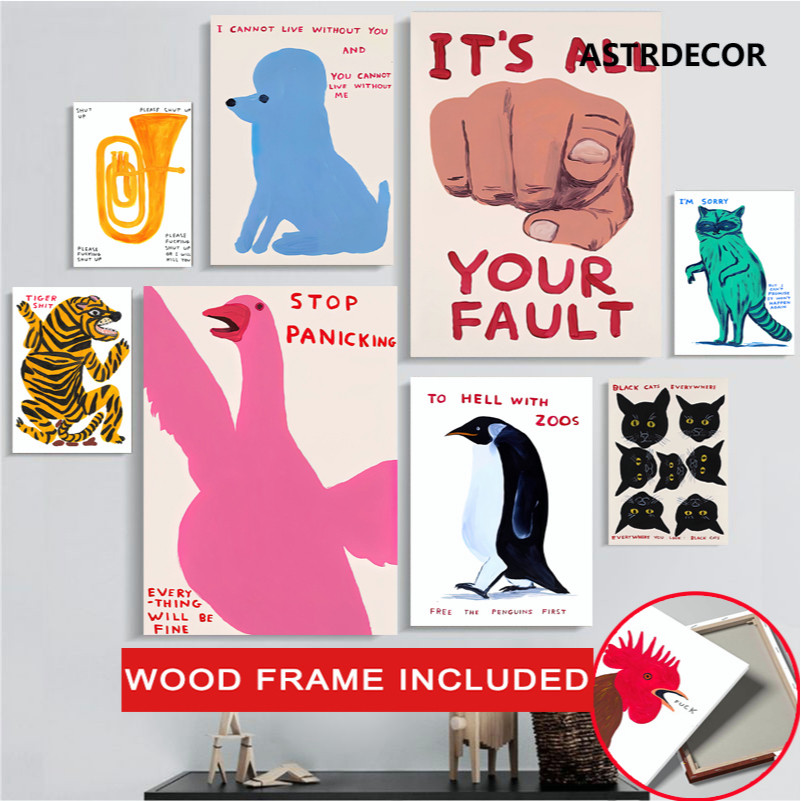 (พร้อมกรอบ) โปสเตอร์ภาพวาดผ้าใบ ลาย David Shrigley Tiger Penguin Rooster สไตล์นอร์ดิก สําหรับตกแต่งผนัง ห้องนั่งเล่น