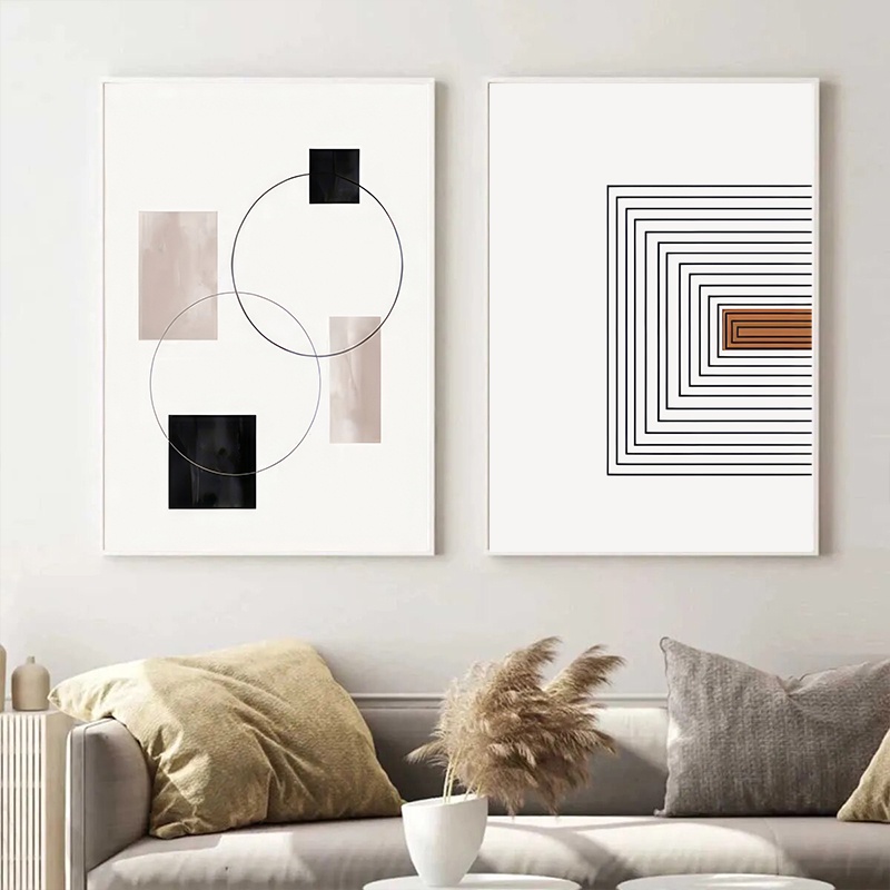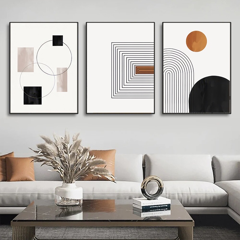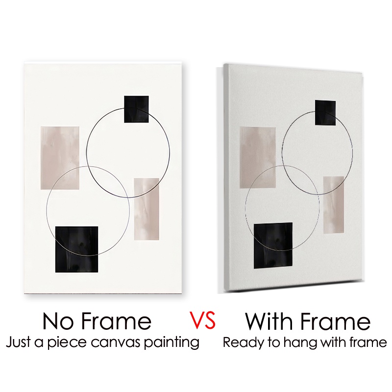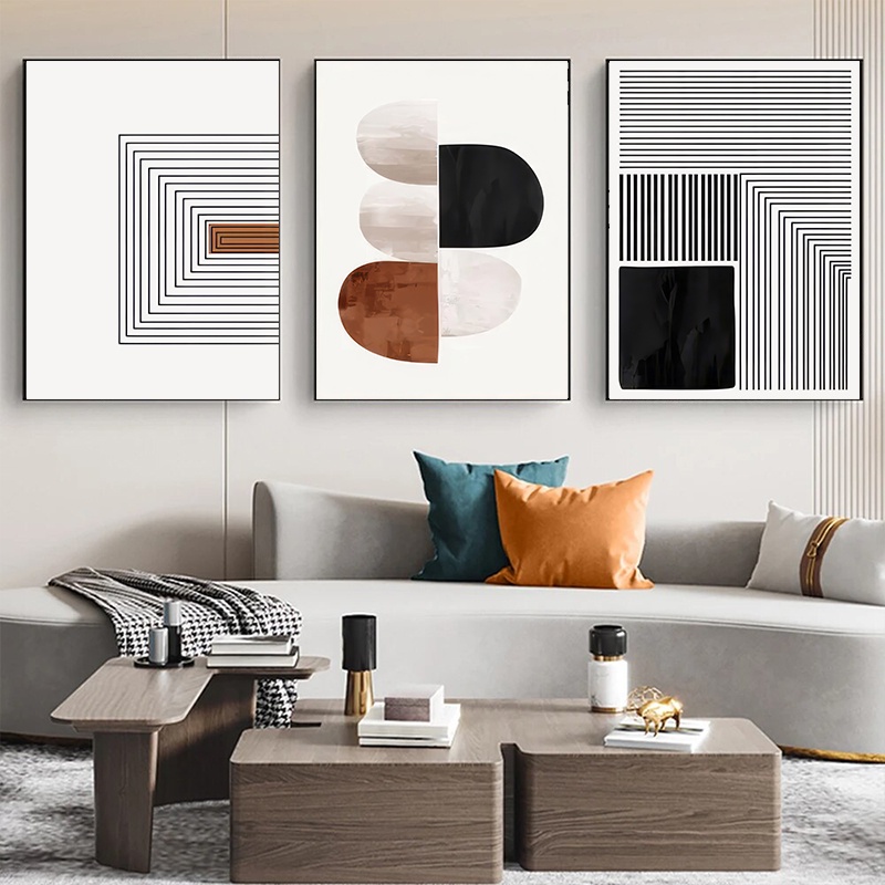(พร้อมกรอบ) ภาพวาดผ้าใบ สีขาว และสีดํา รูปเรขาคณิต สําหรับตกแต่งผนังบ้าน ห้องนั่งเล่น