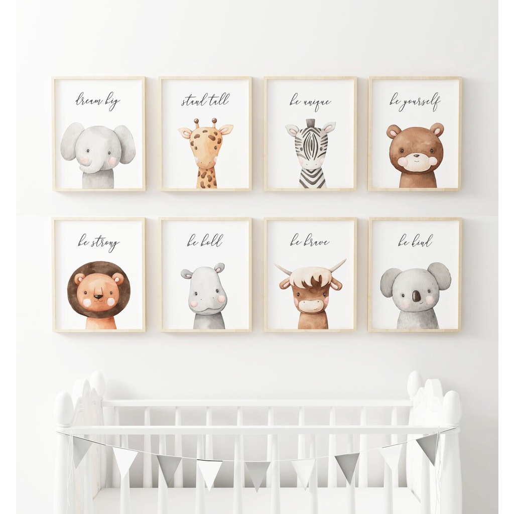 (พร้อมกรอบ) โปสเตอร์ภาพวาดผ้าใบ รูปการ์ตูนสัตว์น่ารัก สําหรับตกแต่งบ้าน ห้องเด็กวัยหัดเดิน