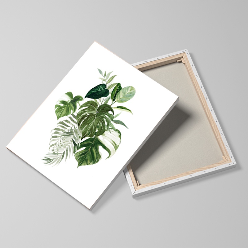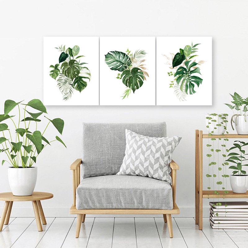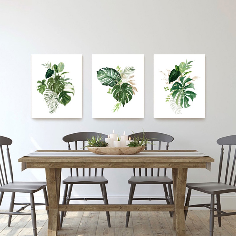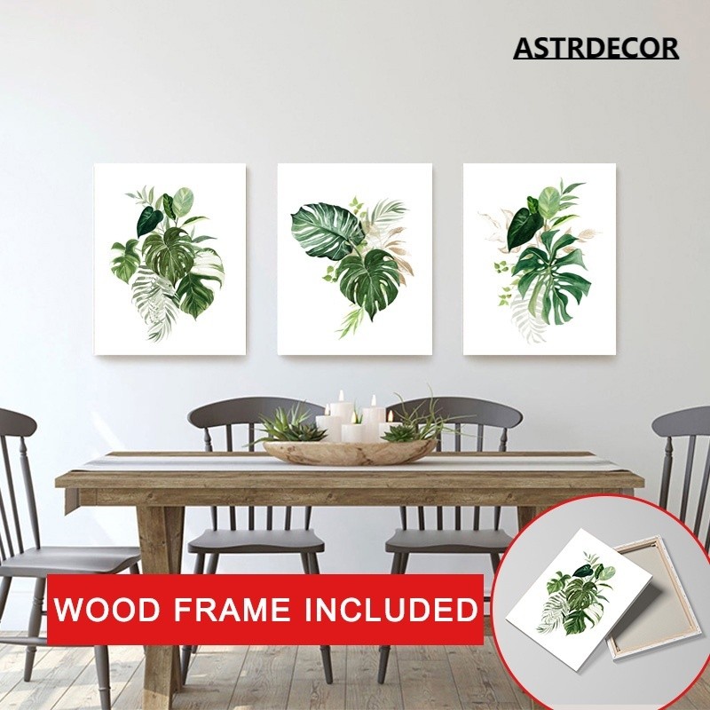 (พร้อมกรอบ) ภาพวาดผ้าใบ รูปใบไม้สีเขียว สไตล์มินิมอล สําหรับตกแต่งผนังบ้าน ห้องนั่งเล่น