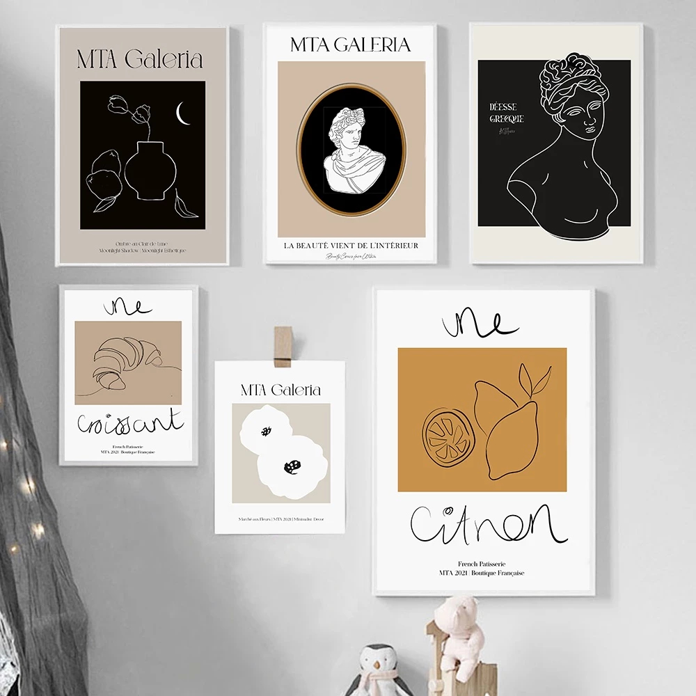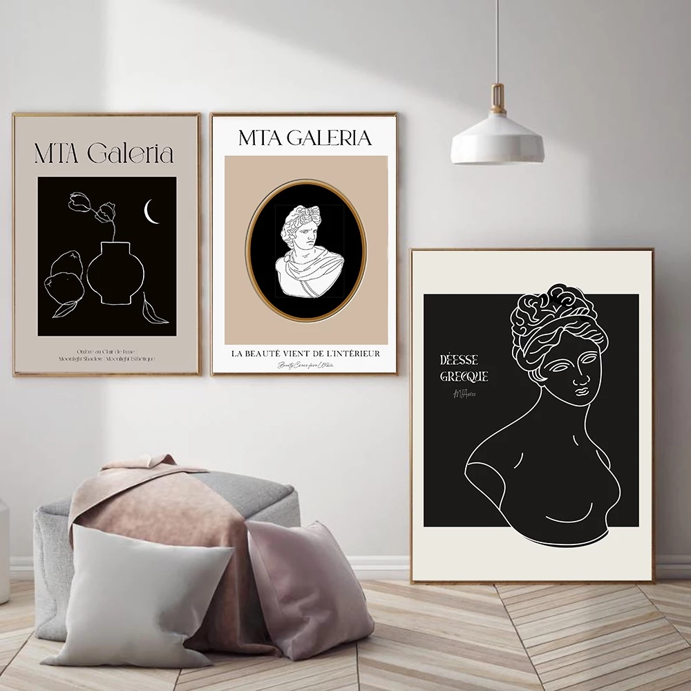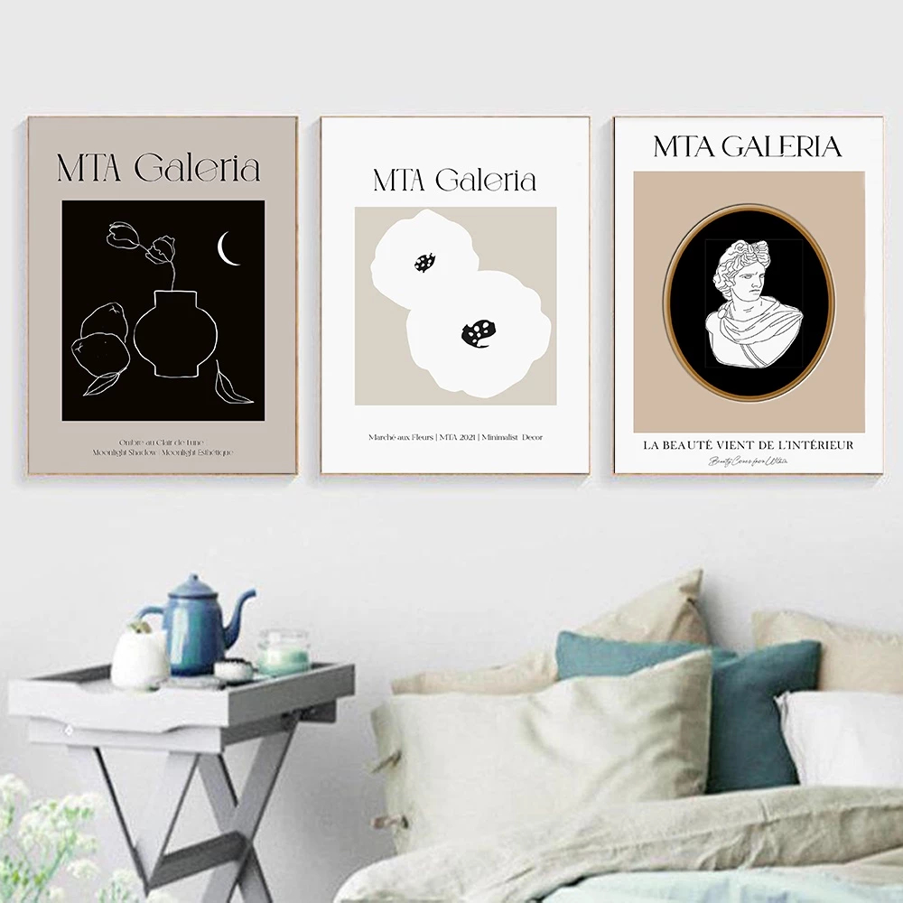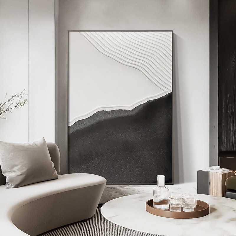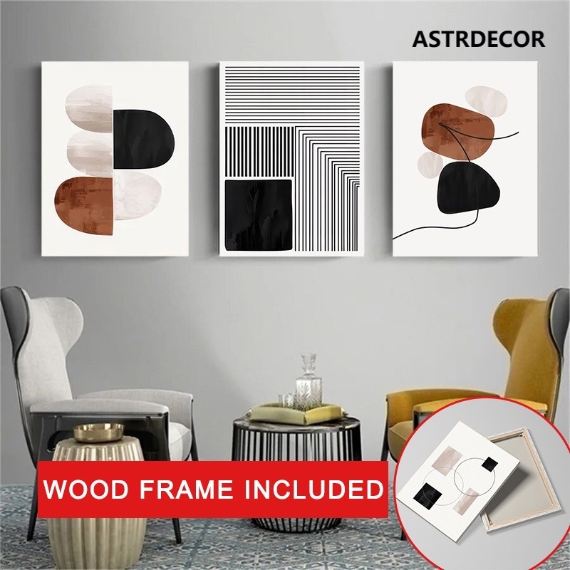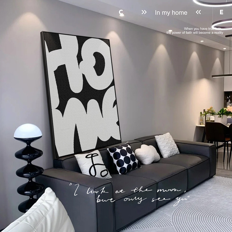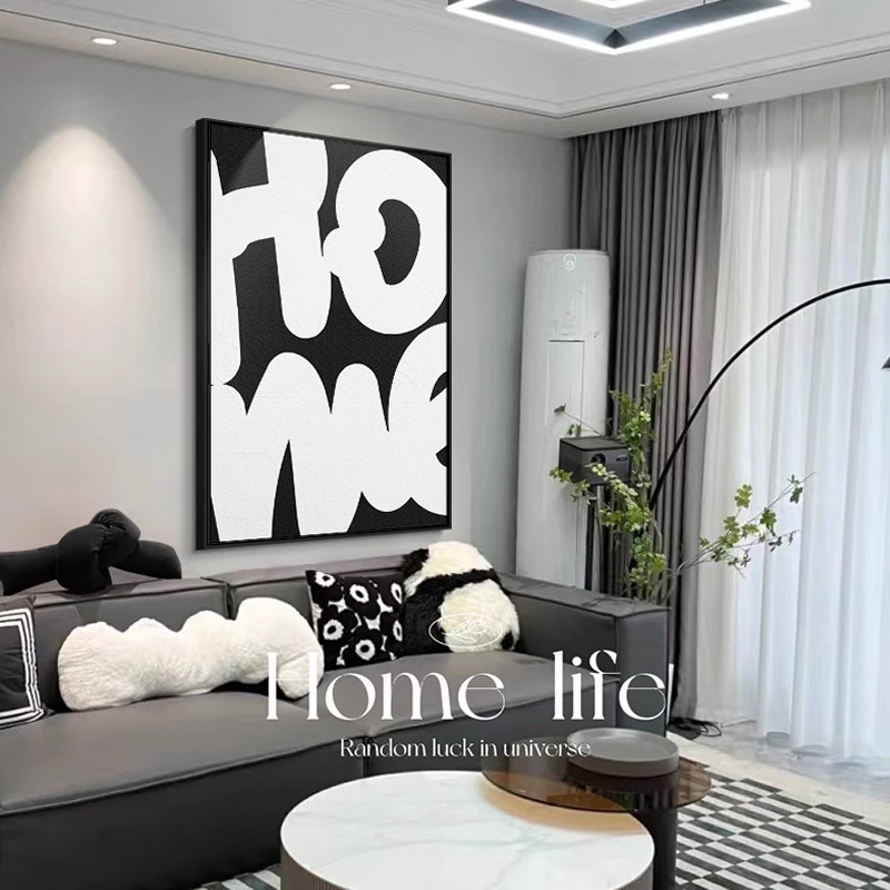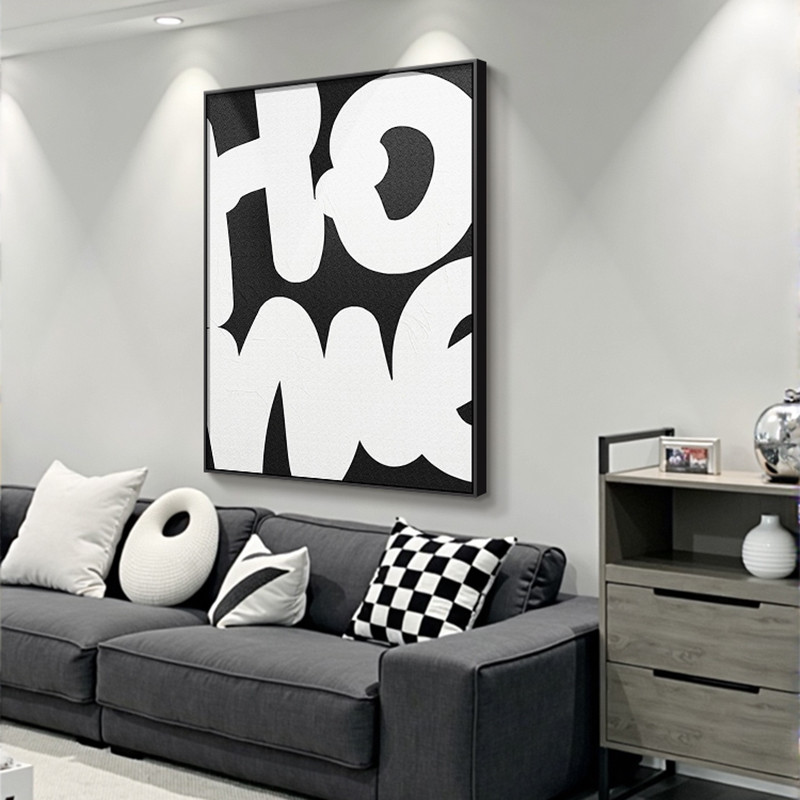 (พร้อมกรอบ)นอร์ดิกสีดําและสีขาวมินิมอลผ้าใบภาพวาดตัวอักษรศิลปะนามธรรมภาพที่ทันสมัย