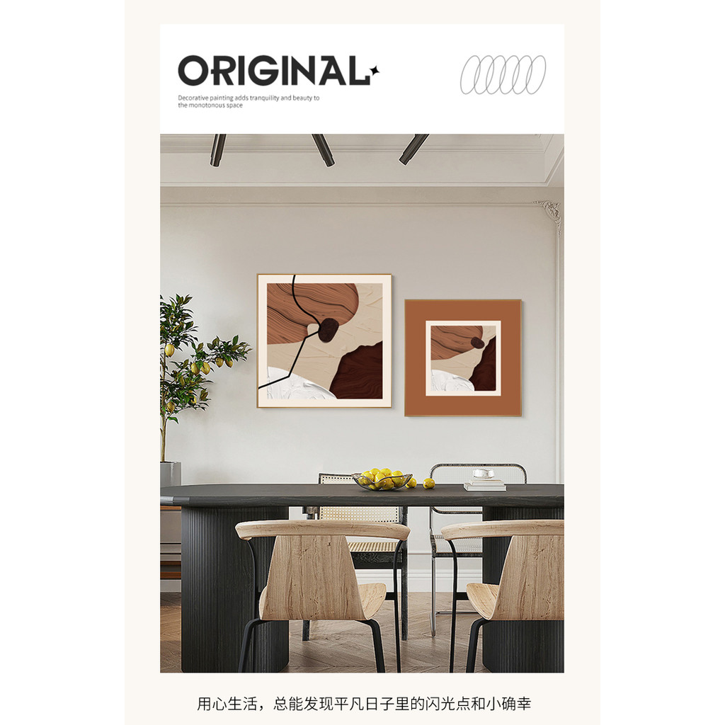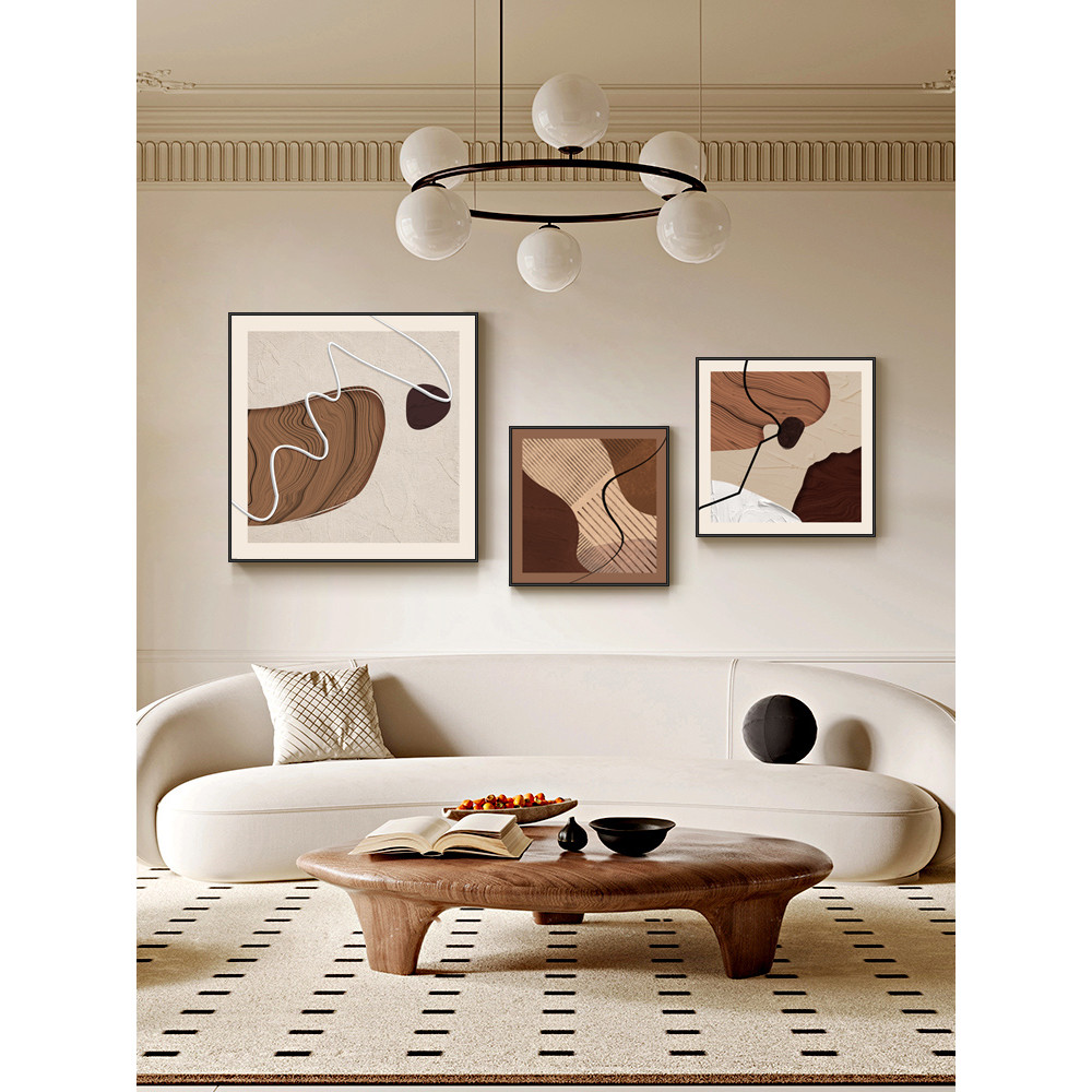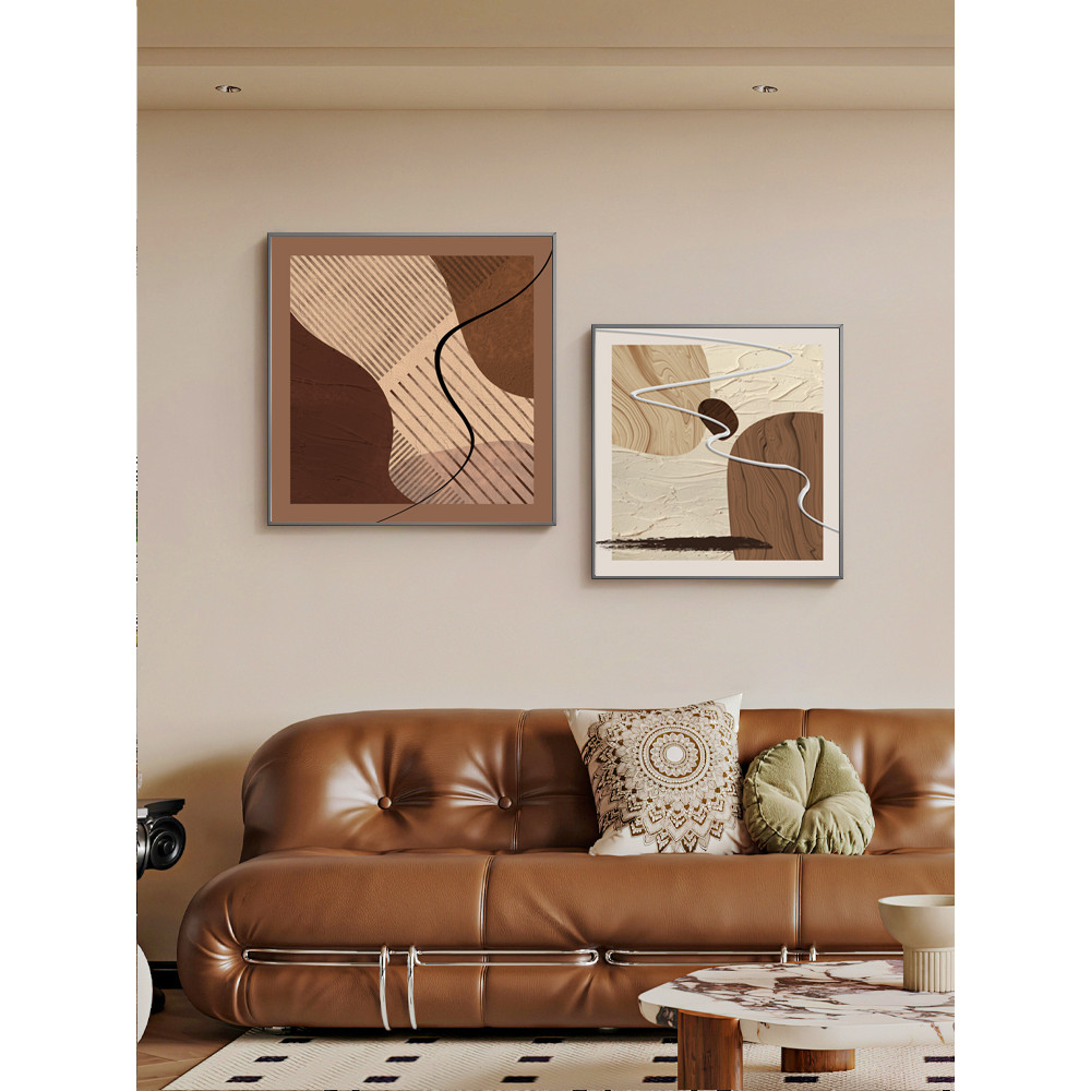 (พร้อมกรอบ) Morandi Modern Abstract Line Art Light Luxury Beige ภาพวาดผ้าใบพิมพ์ภาพ