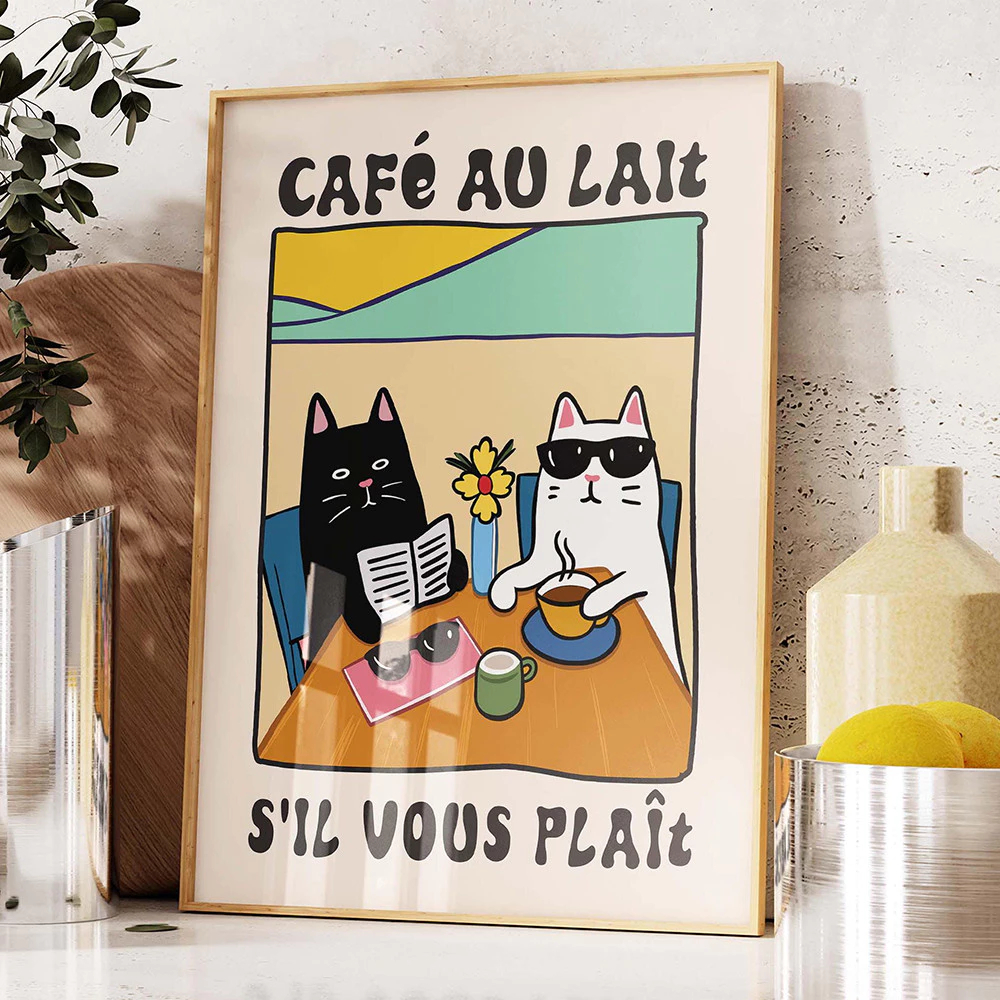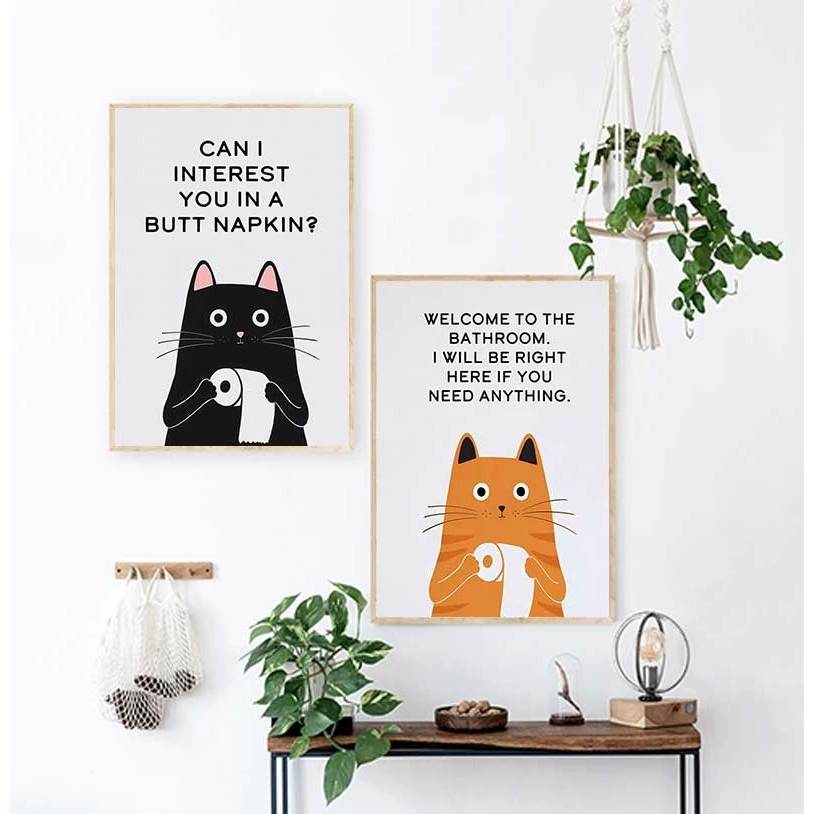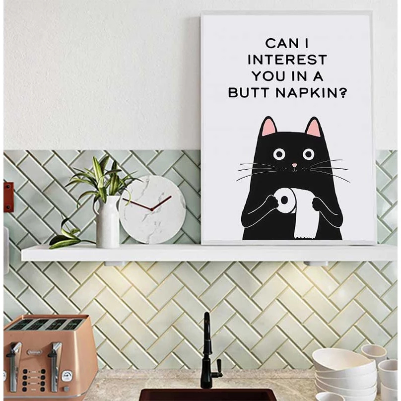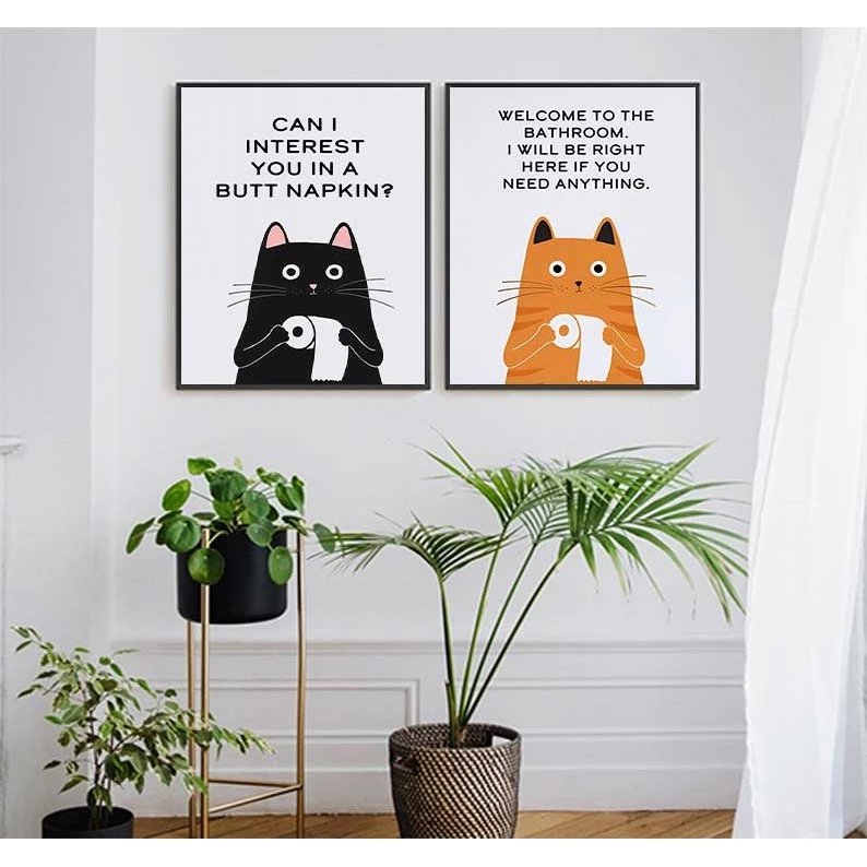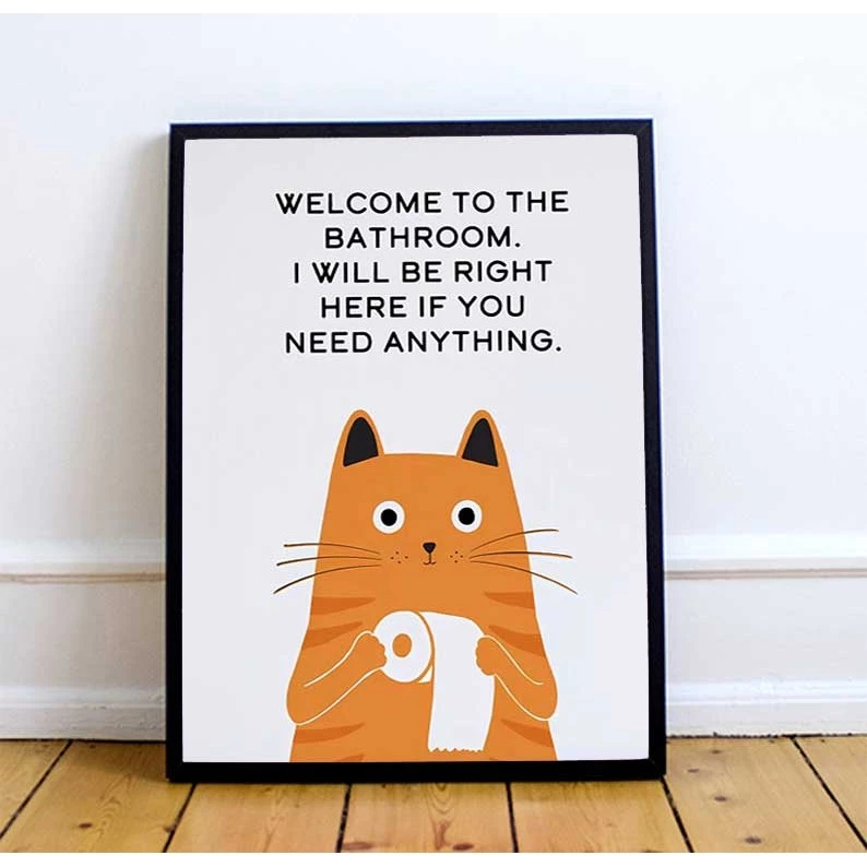 (พร้อมส่งจากไทย ภาพรวมกรอบ)รูปคำคม แมว อารมณ์ขัน นามธรรม ภาพคกแค่งห้องน้ํา