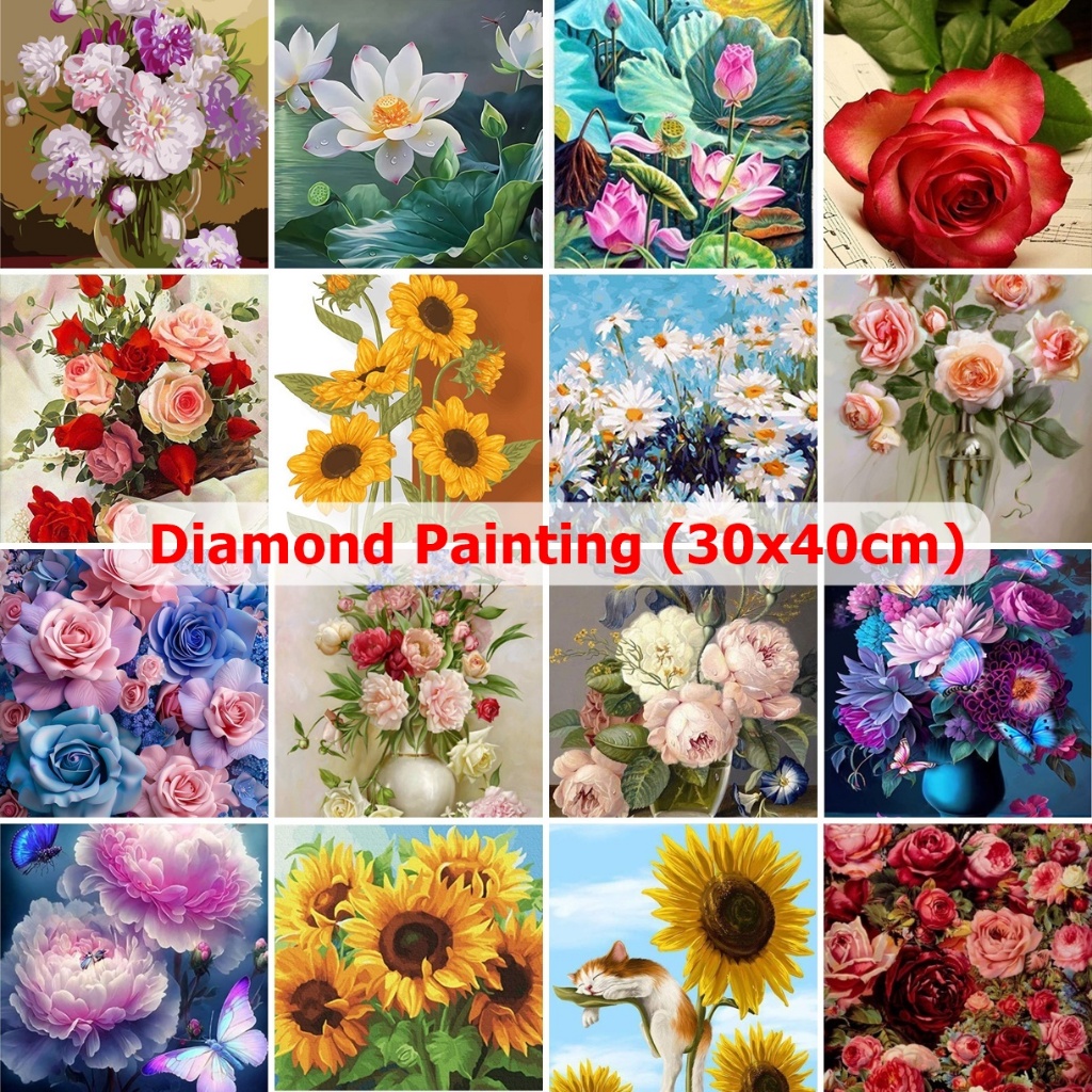 (พร้อมส่ง) ภาพติดเพชร diamond painting ภาพดอกไม้ ภาพวาดเพชร ศิลปะ DIY 5D ภาพตกแต่งบ้าน ขนาด30x40cm