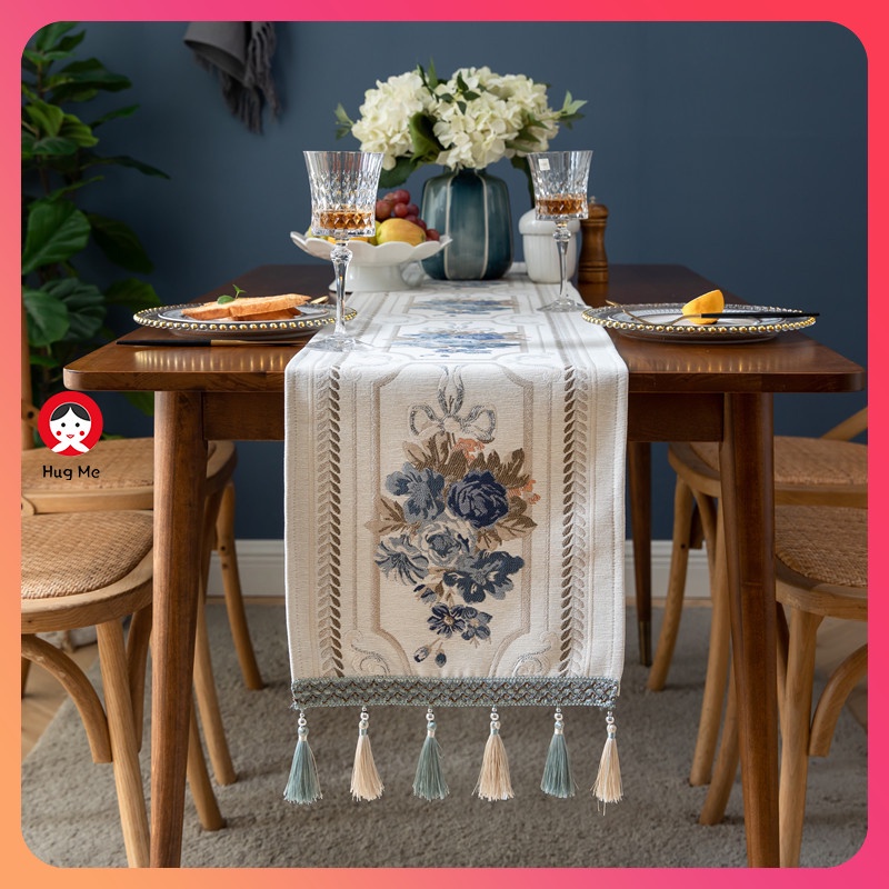 สินค้าใหม่ 🔴 ผ้าปูโต๊ะ ลายดอกไม้ ประดับพู่ หรูหรา สไตล์ยุโรป เรโทร สําหรับตกแต่งบ้าน งานเลี้ยง HUGME